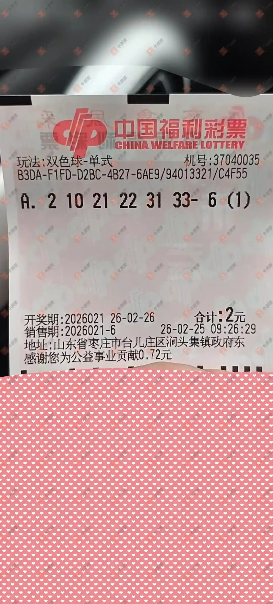双色球 2026021期 晒中