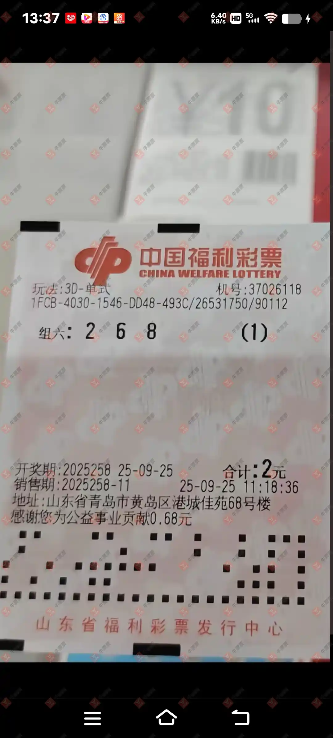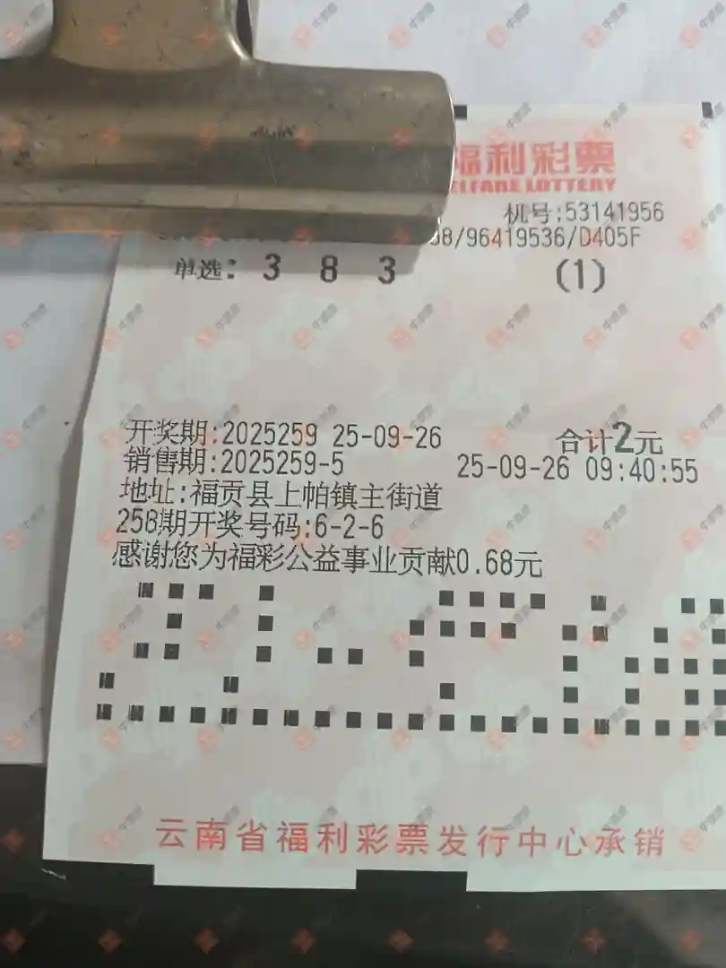 福彩3D 2025259期