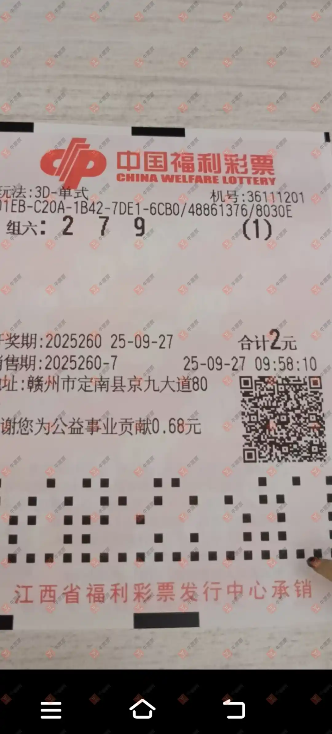 福彩3D 2025258期