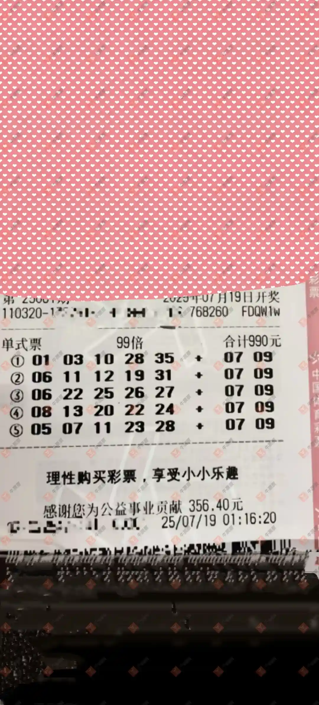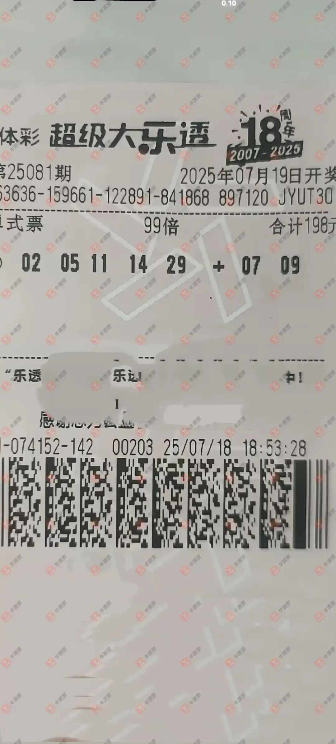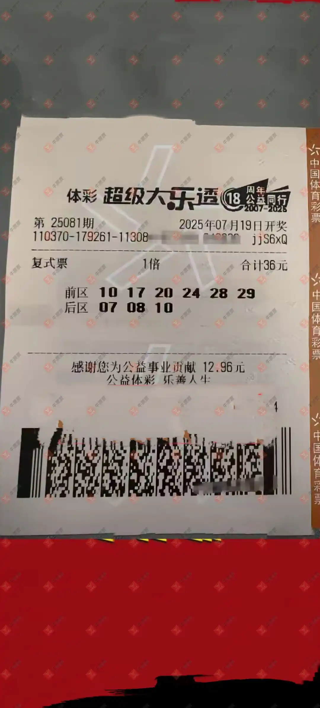 大乐透 2025081期 晒中