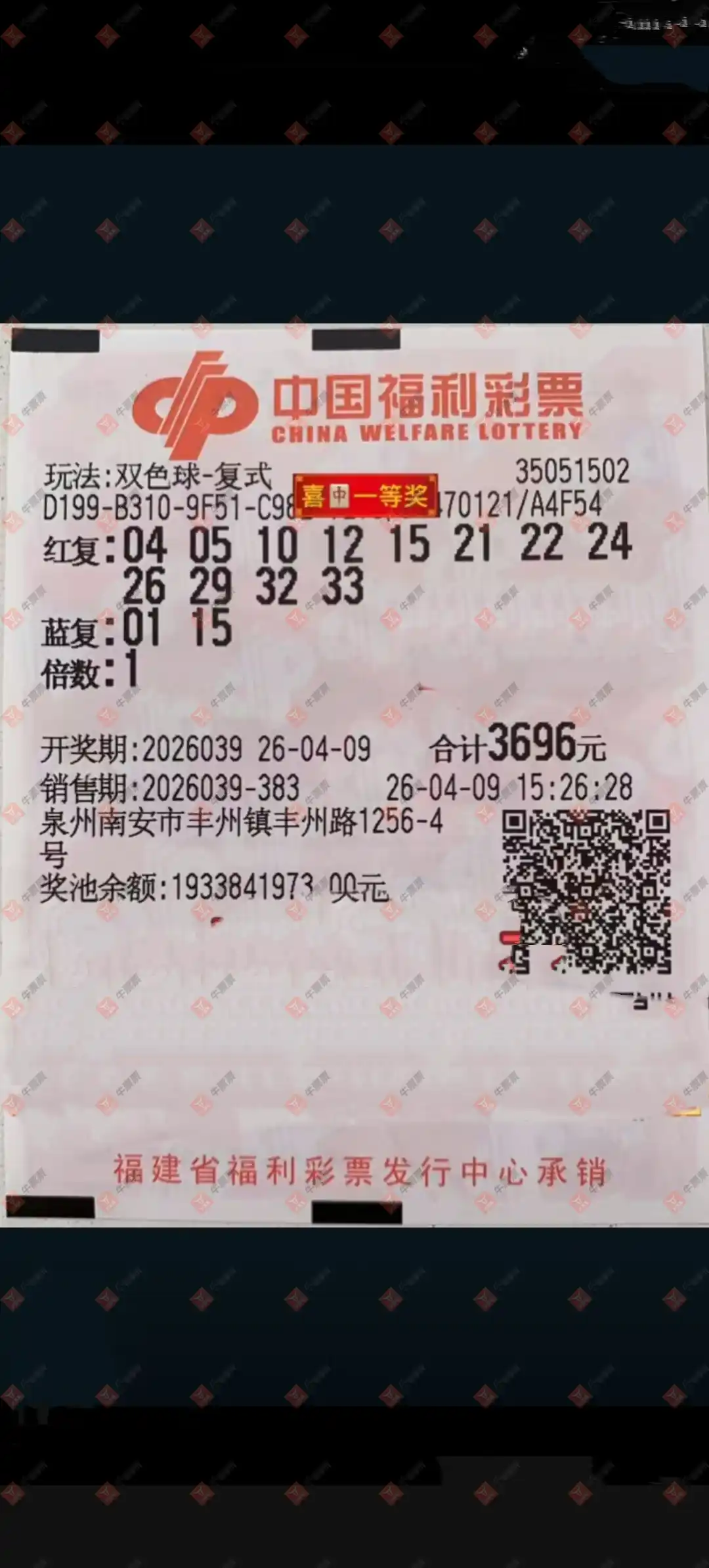 双色球 2026039期 晒中