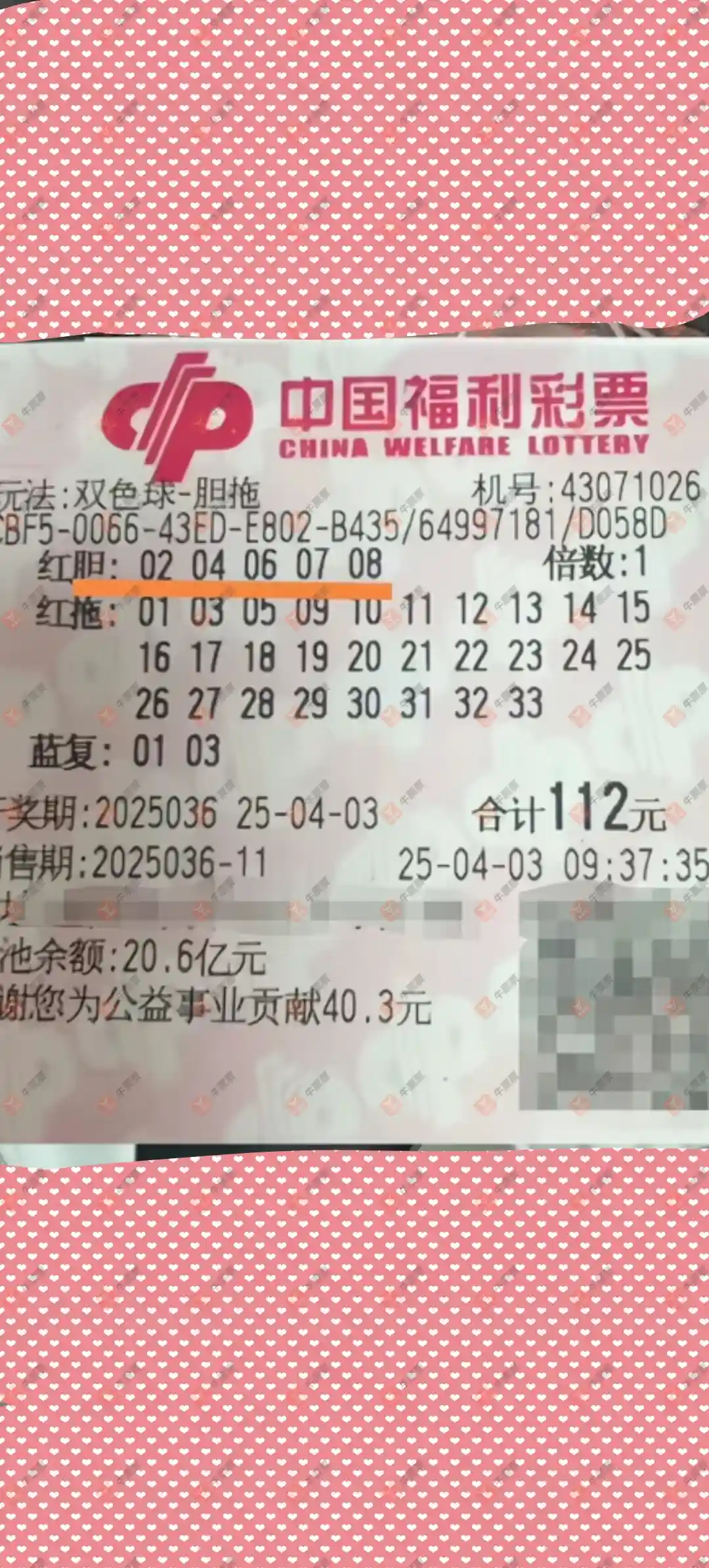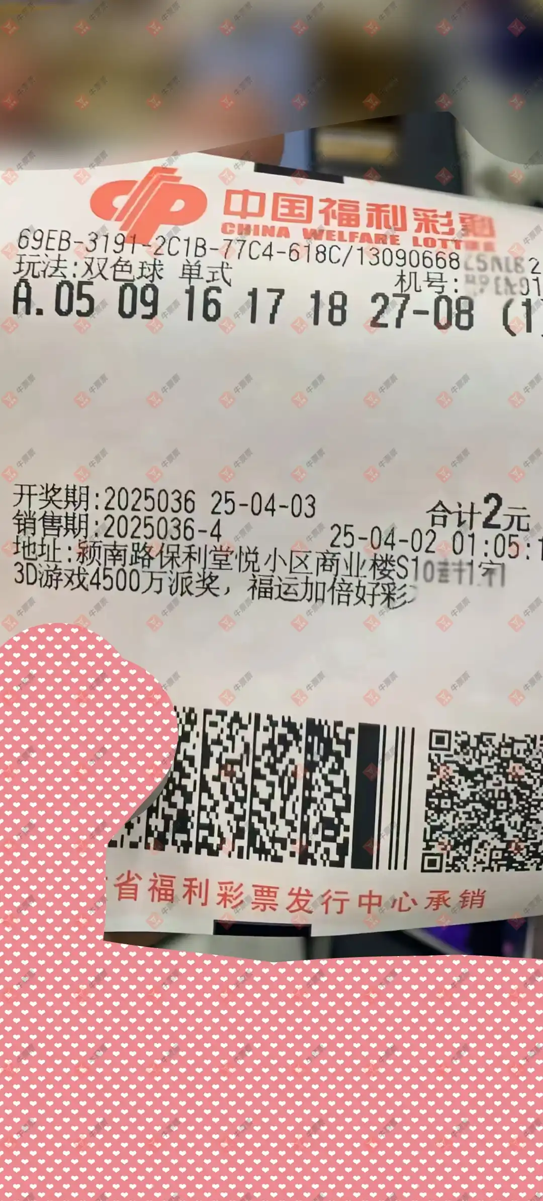 双色球 2025036期 晒中