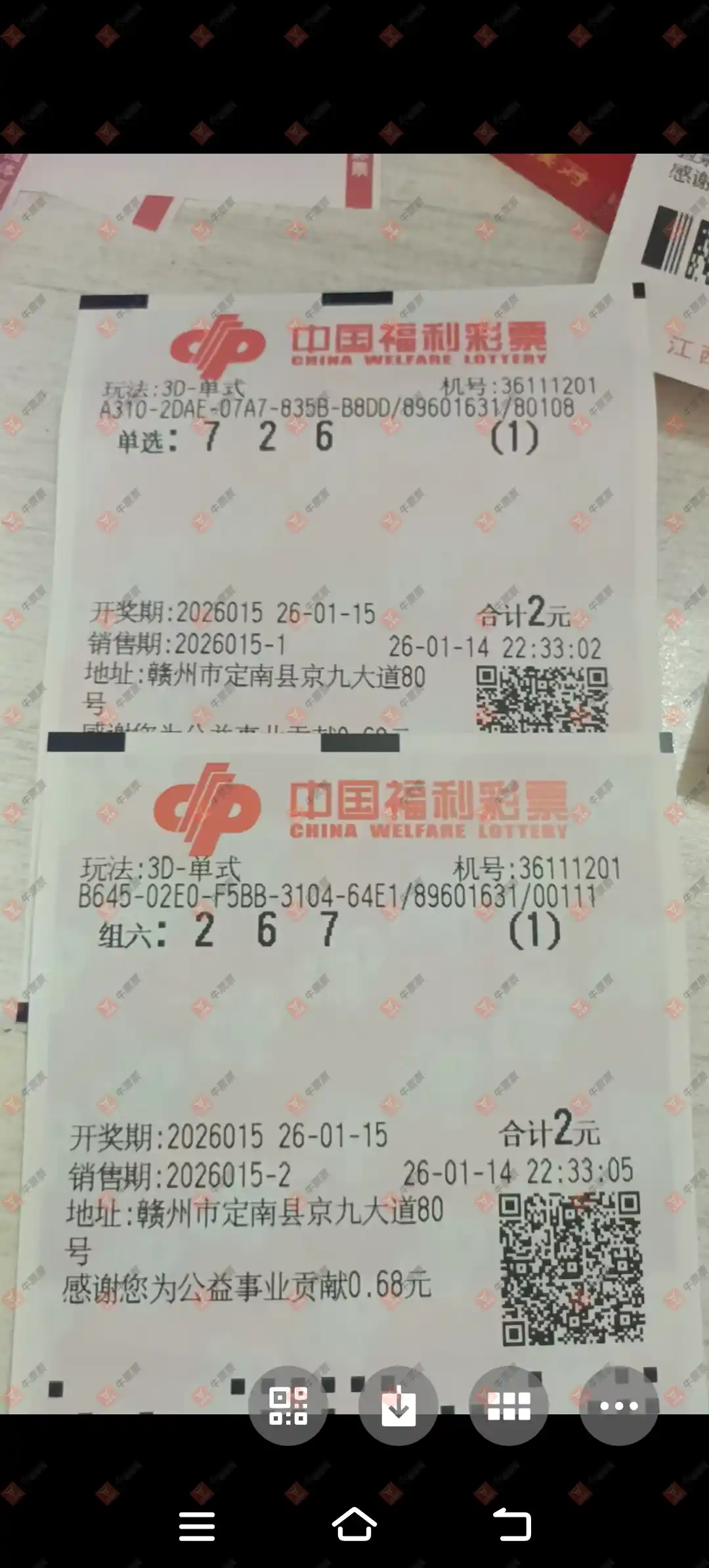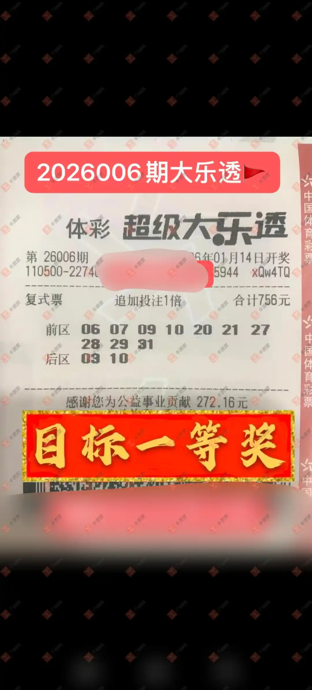 双色球 2026007期 晒中