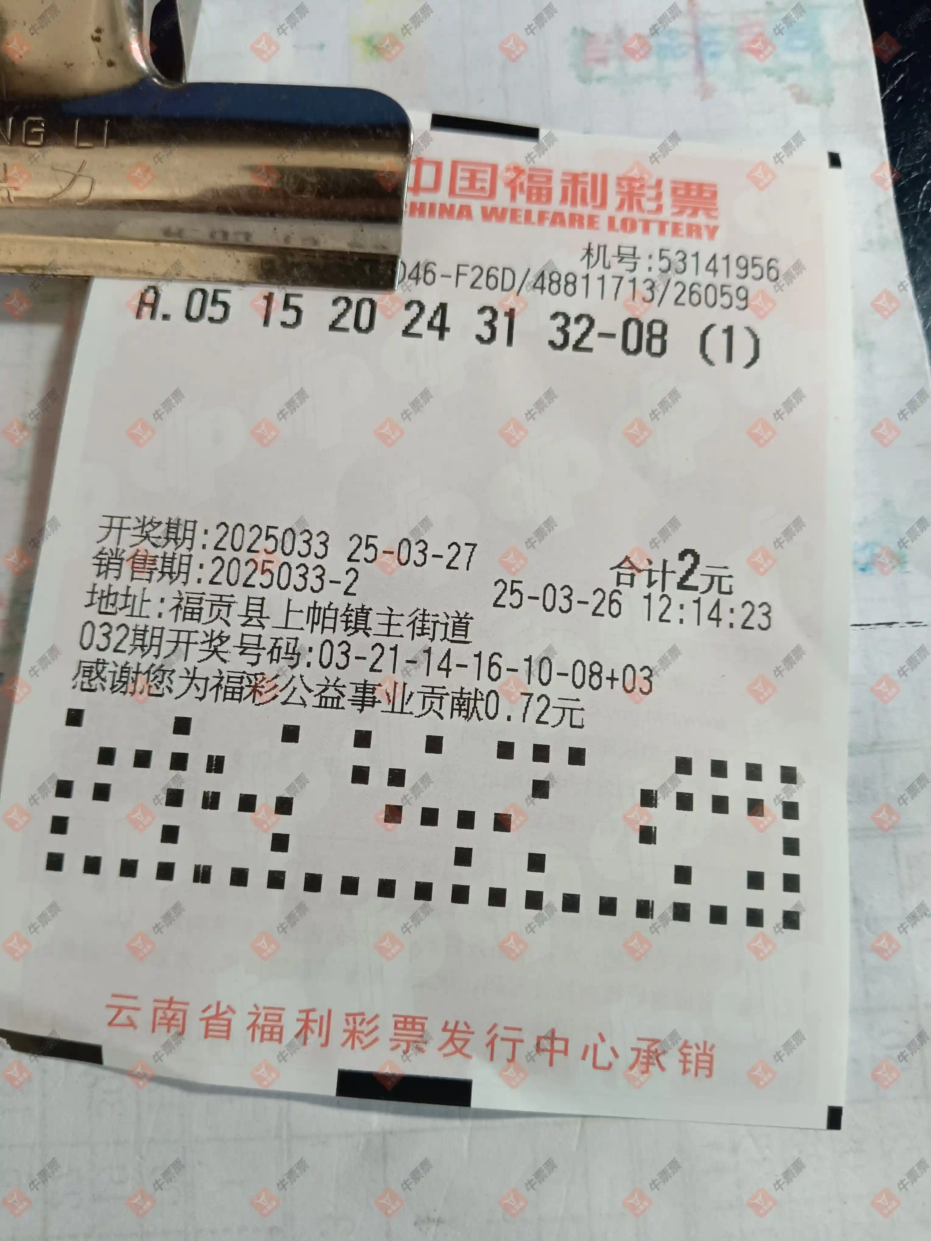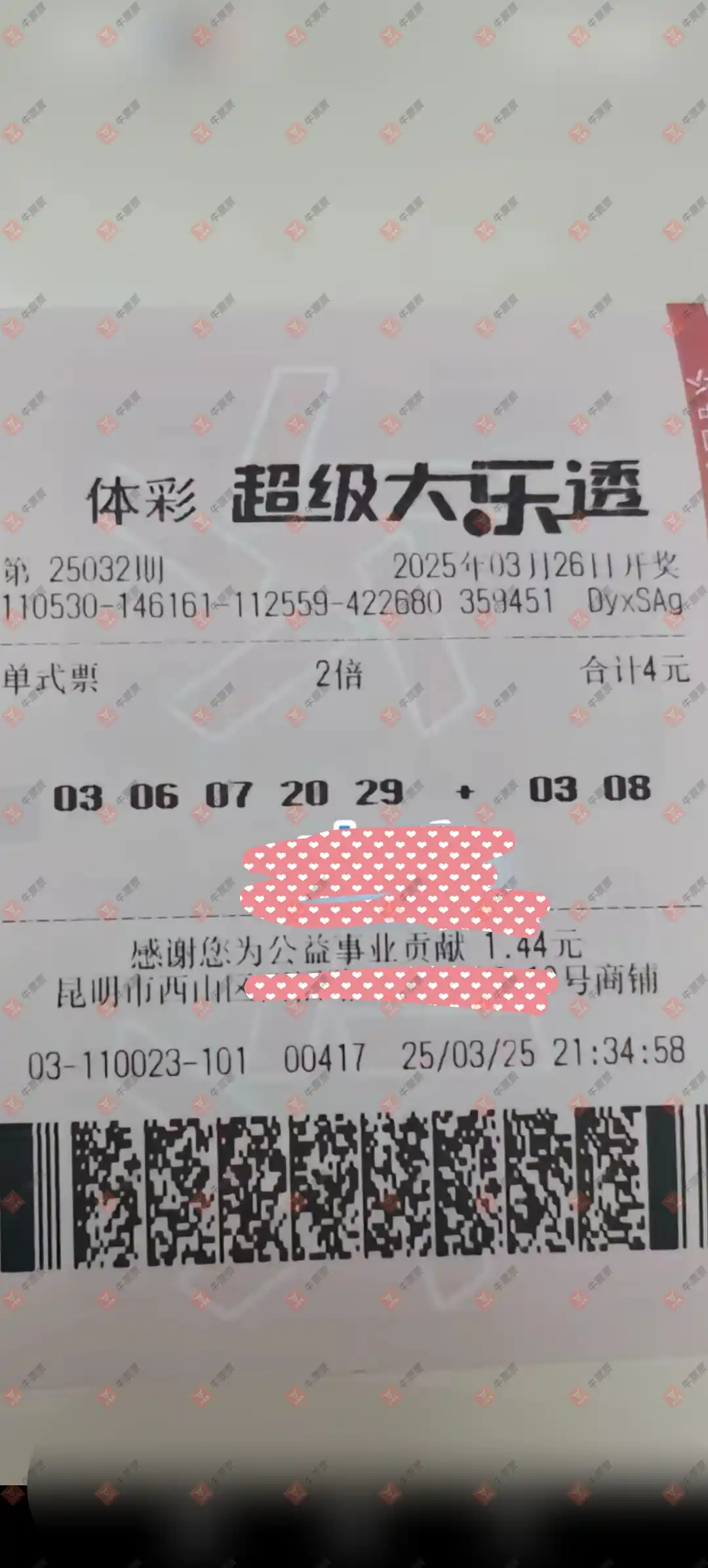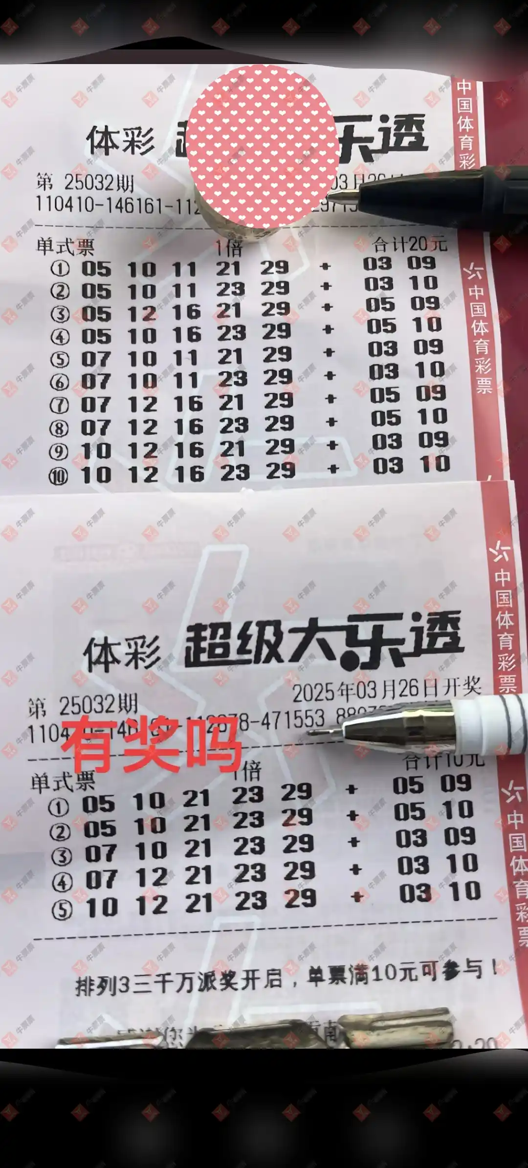 大乐透 2025032期 晒中