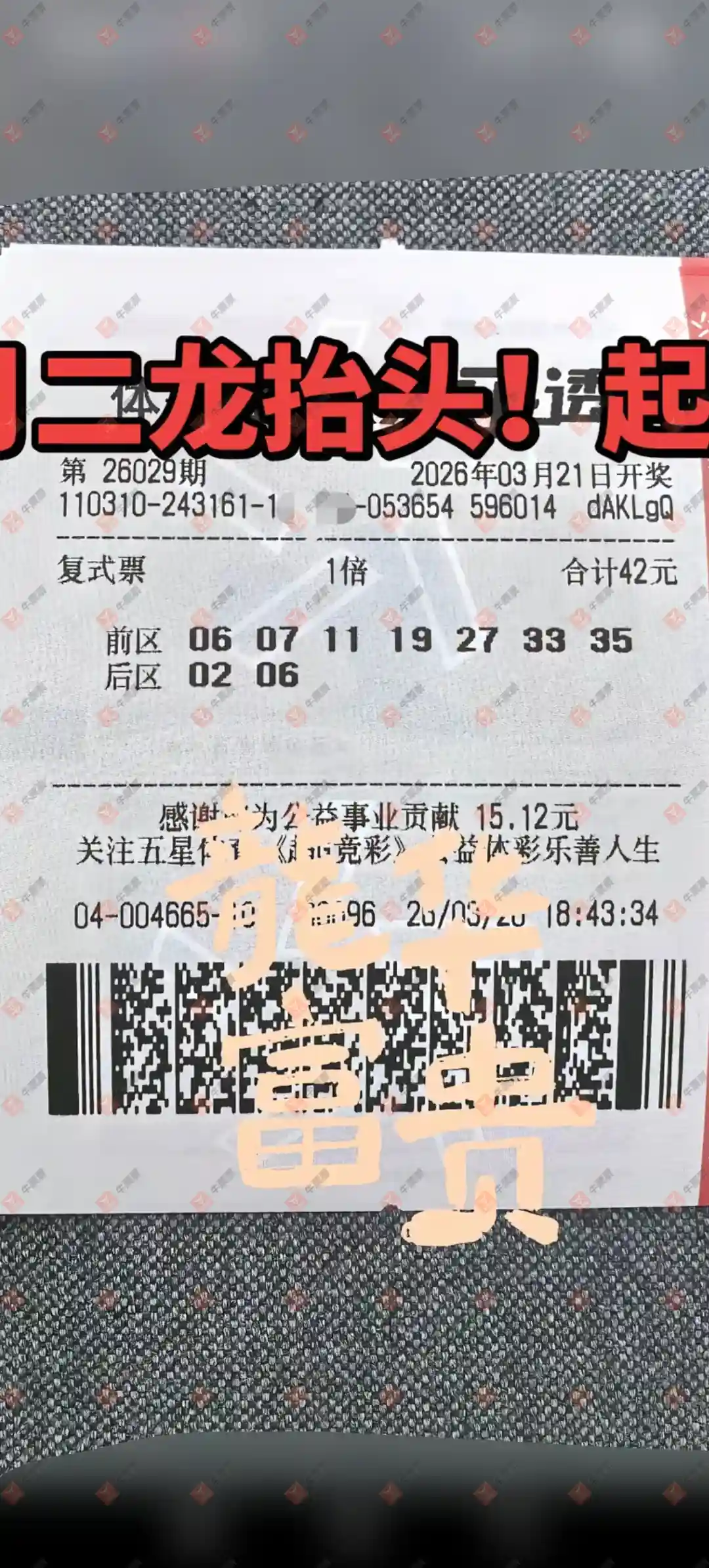 大乐透 2026029期 晒中