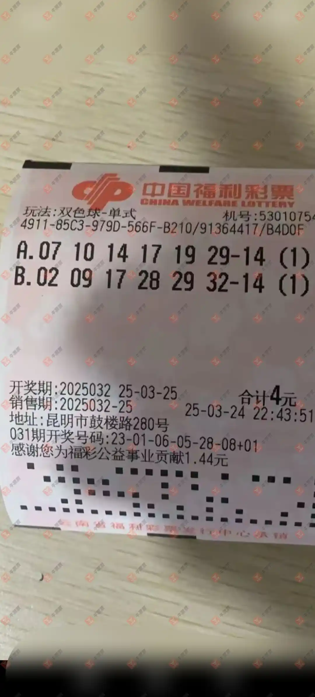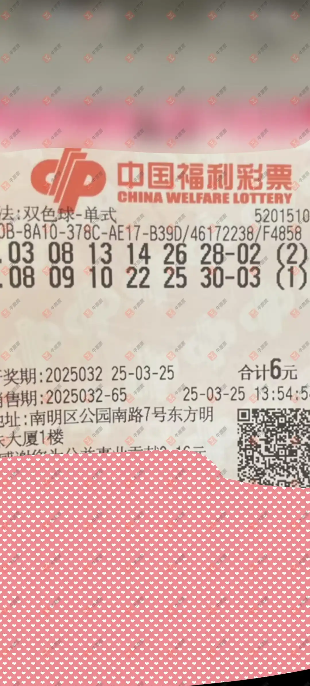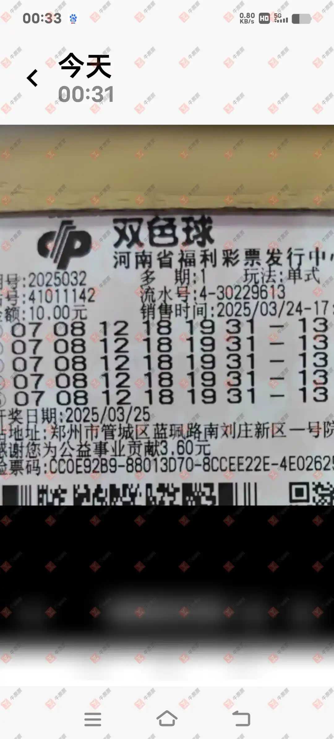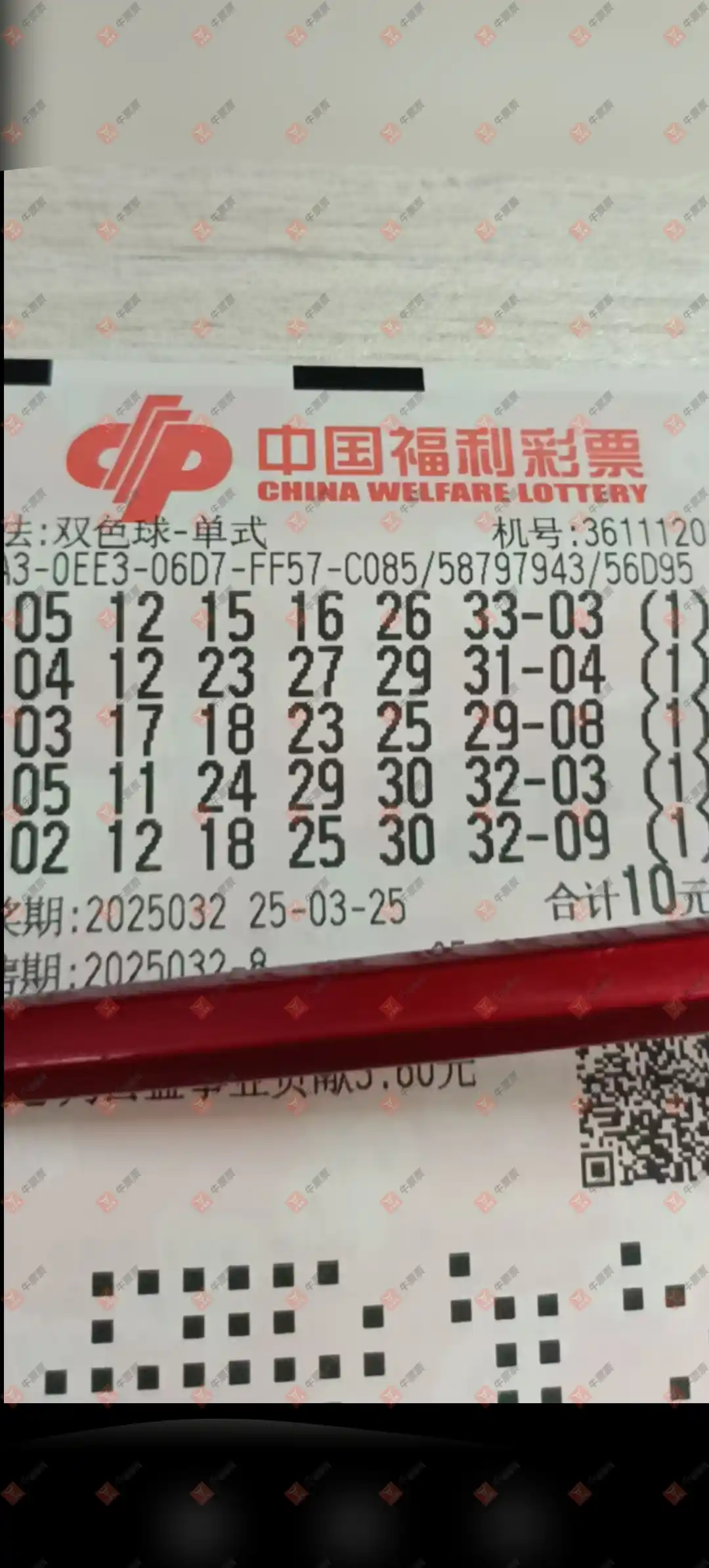 双色球 2025032期 晒中