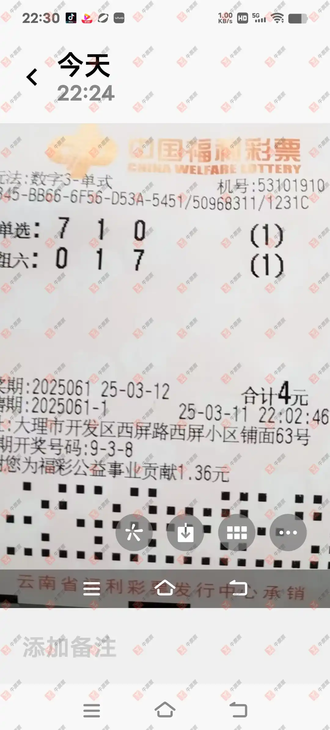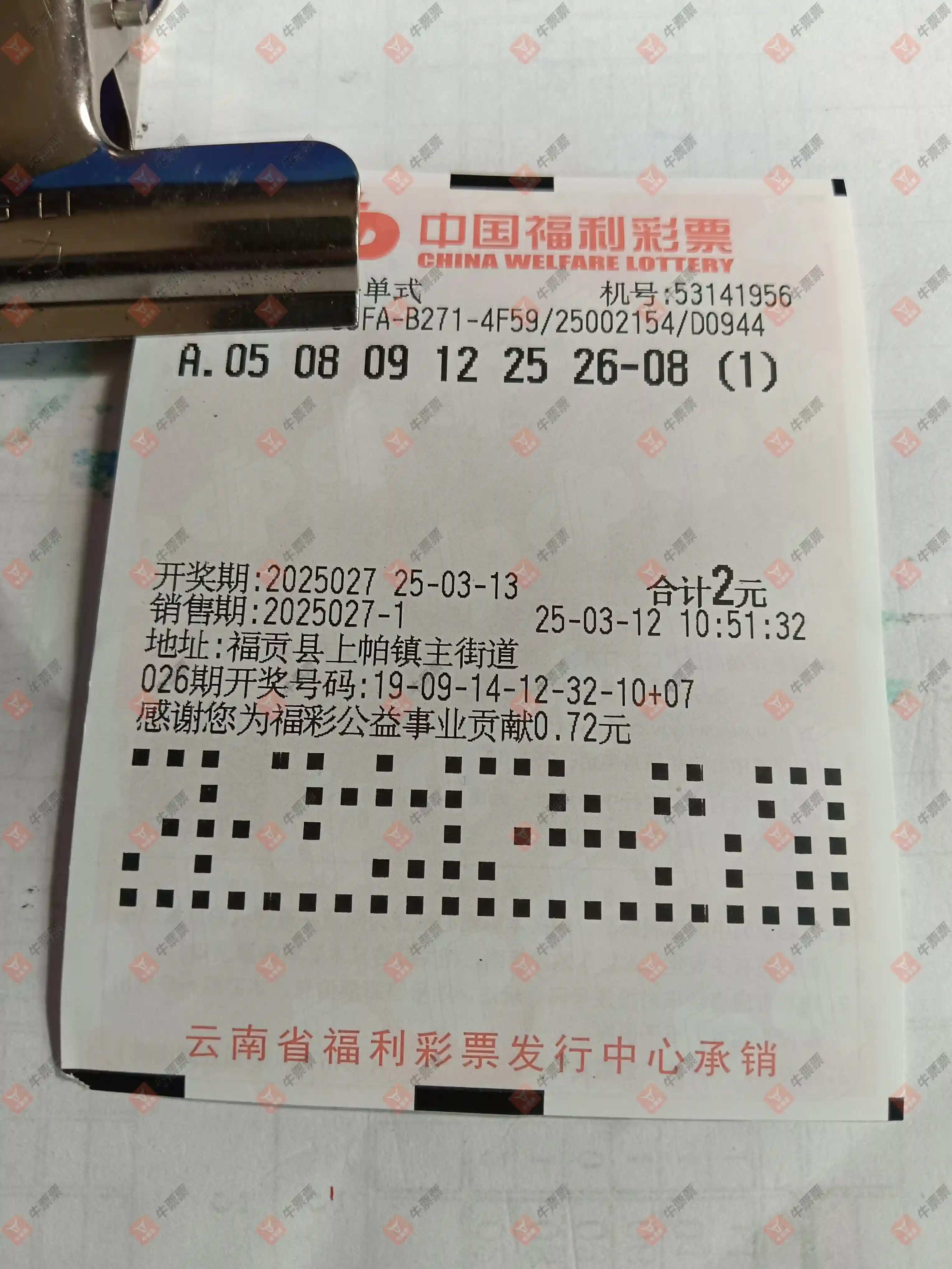 双色球 2025026期 晒中