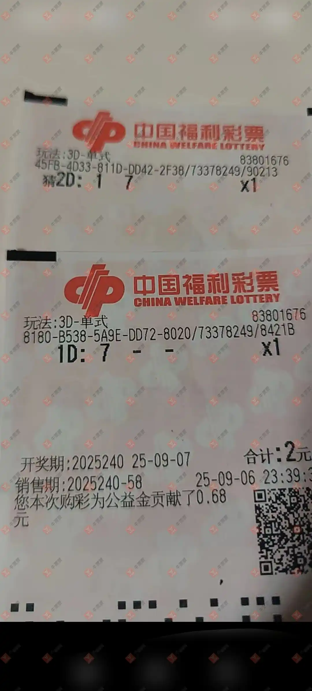 福彩3D 2025240期