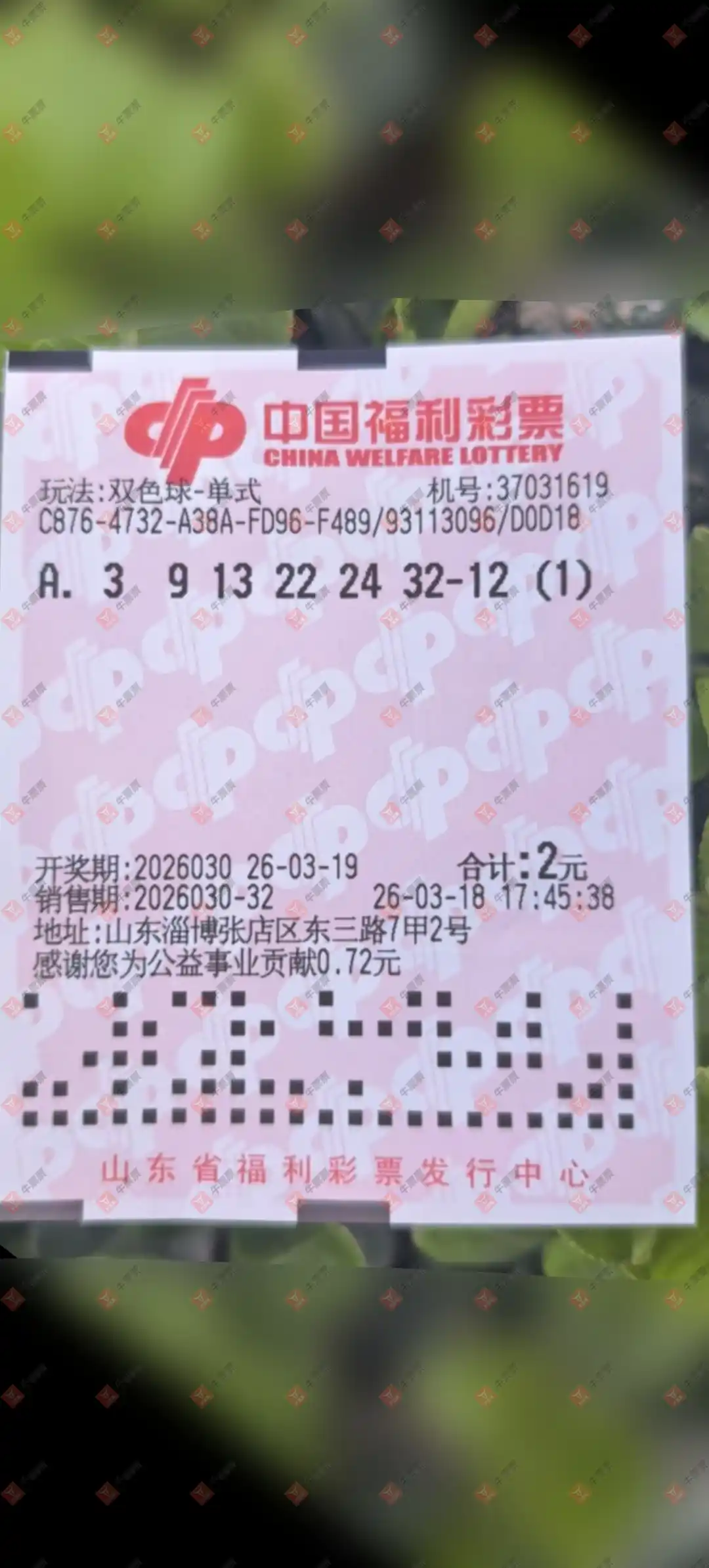 双色球 2026030期 晒中