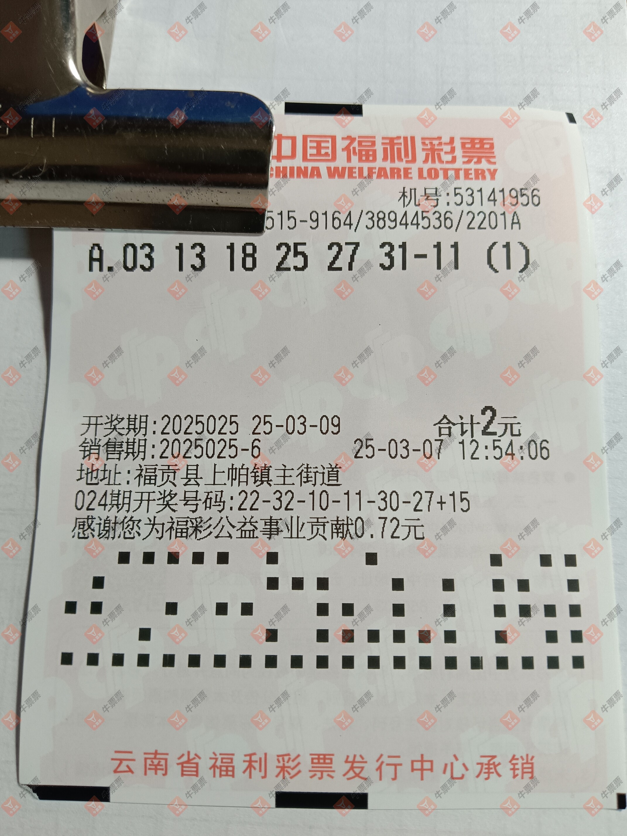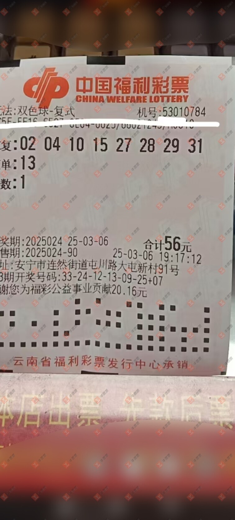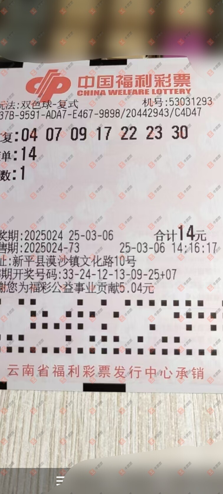 双色球 2025024期 晒中