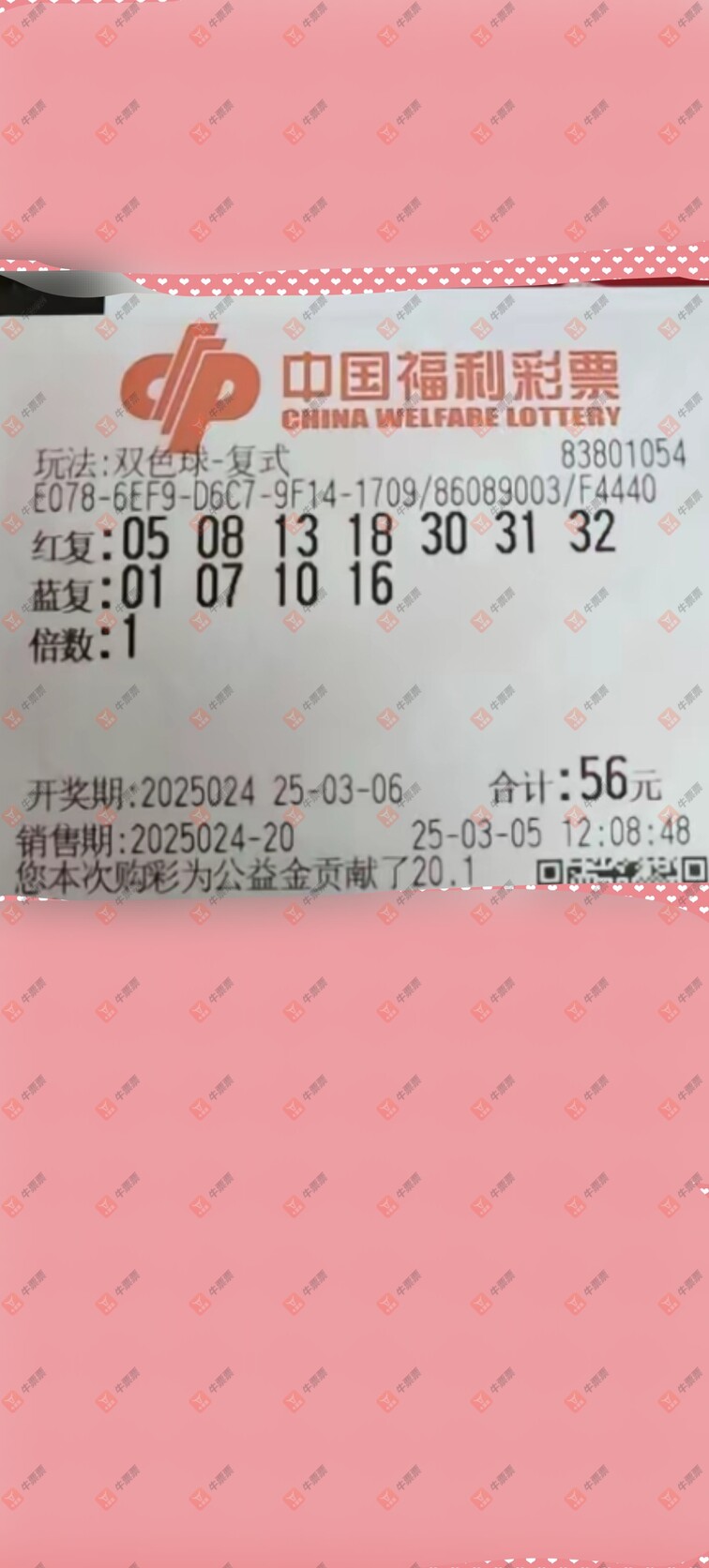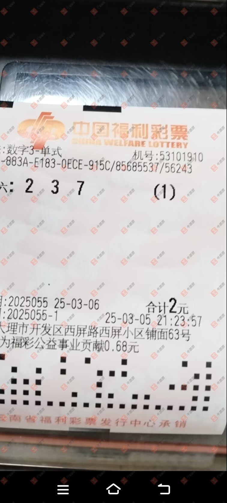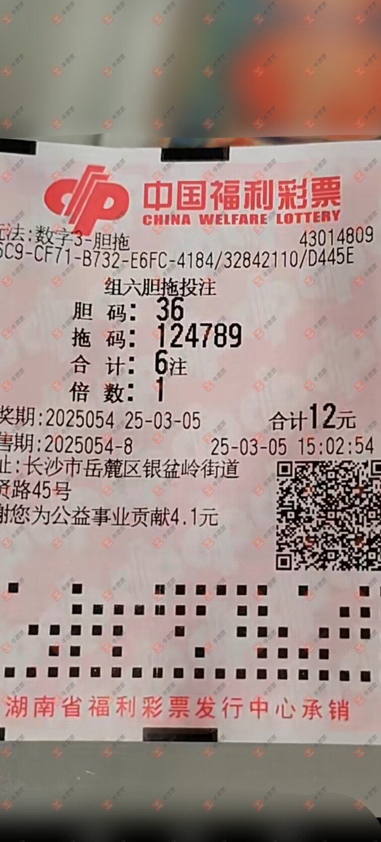 福彩3D 2025054期 晒中