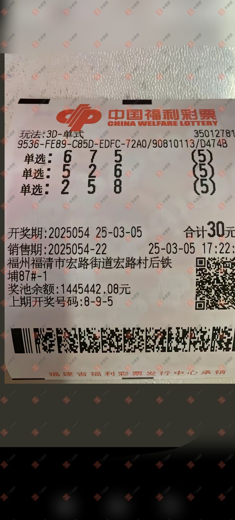 福彩3D 2025055期