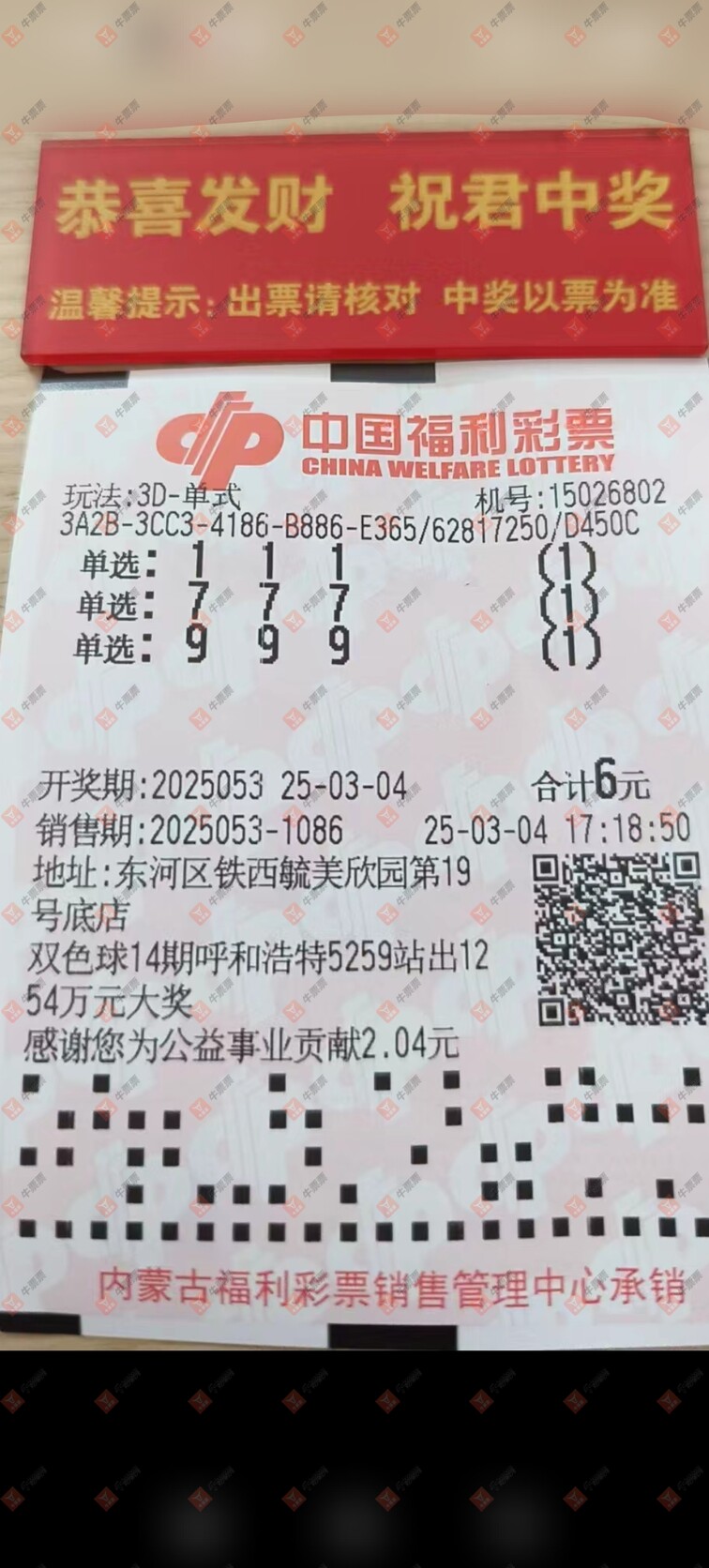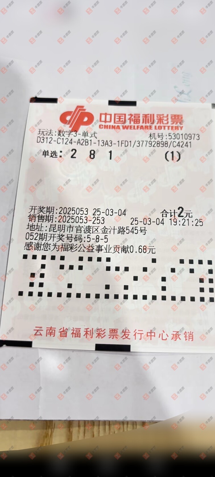 福彩3D 2025053期