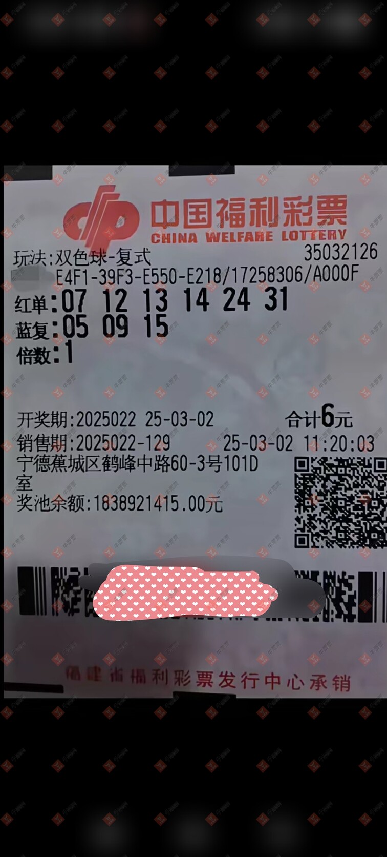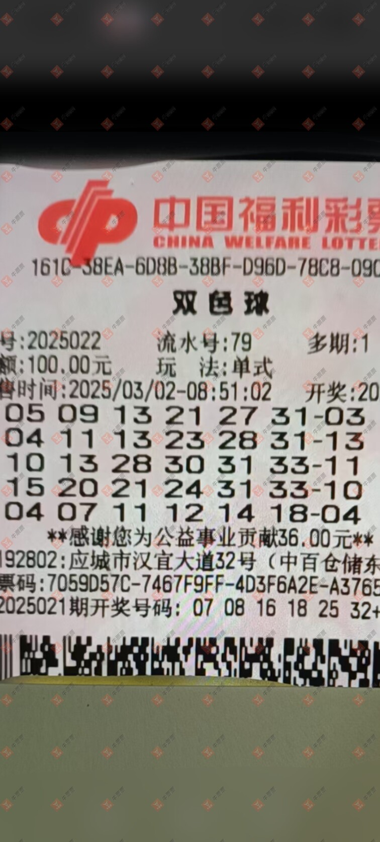 双色球 2025022期 晒中