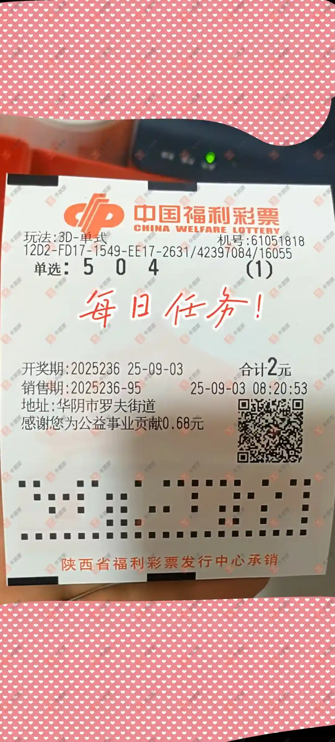 福彩3D 2025237期