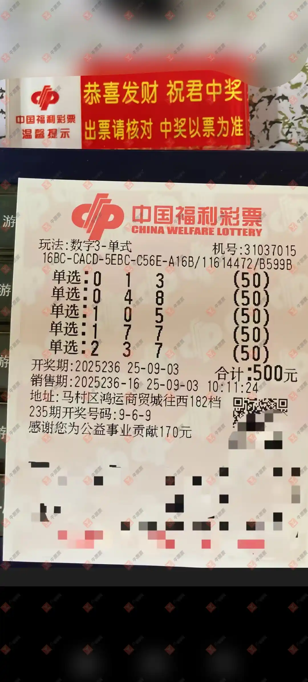 福彩3D 2025236期