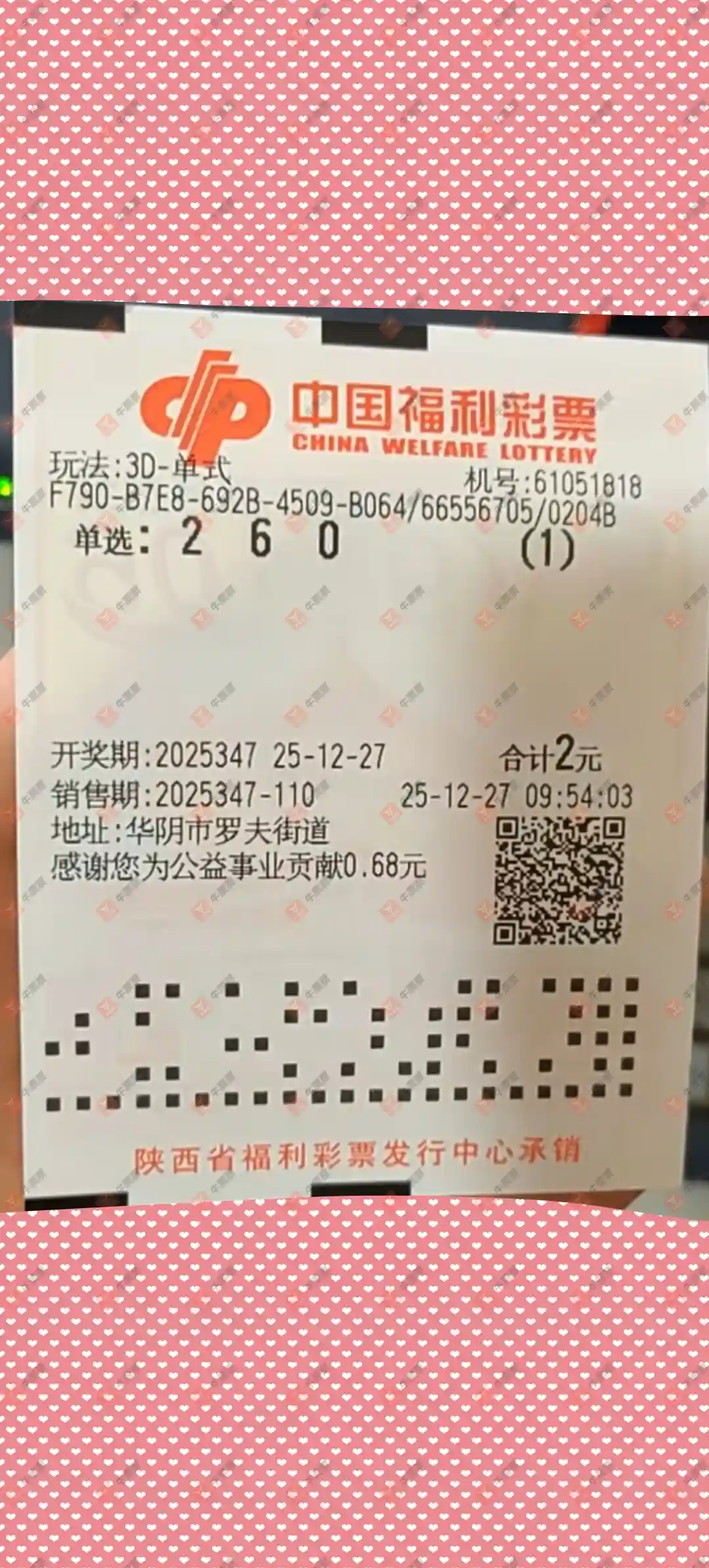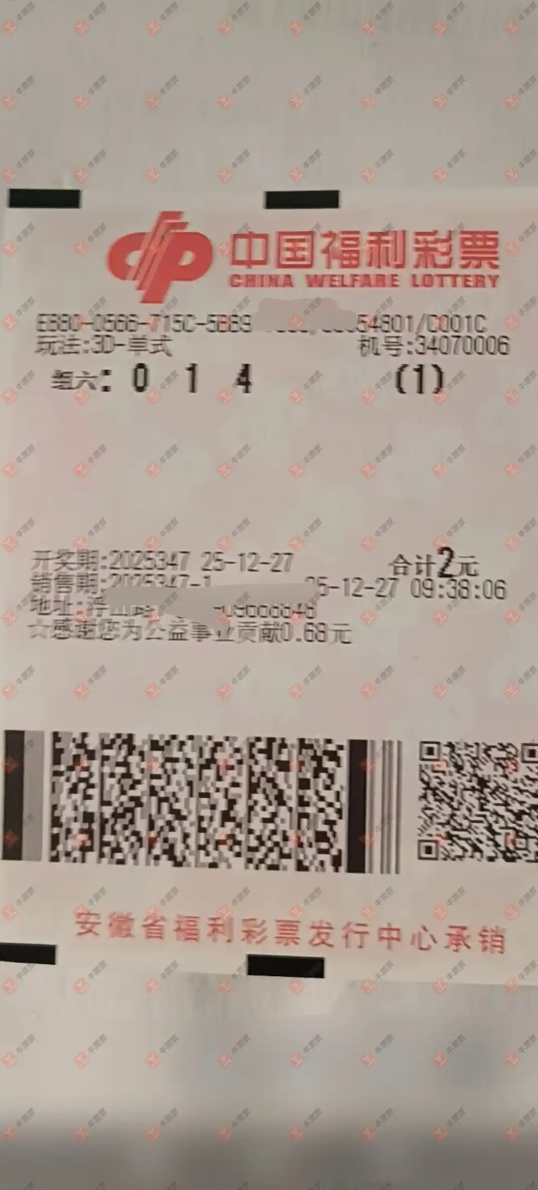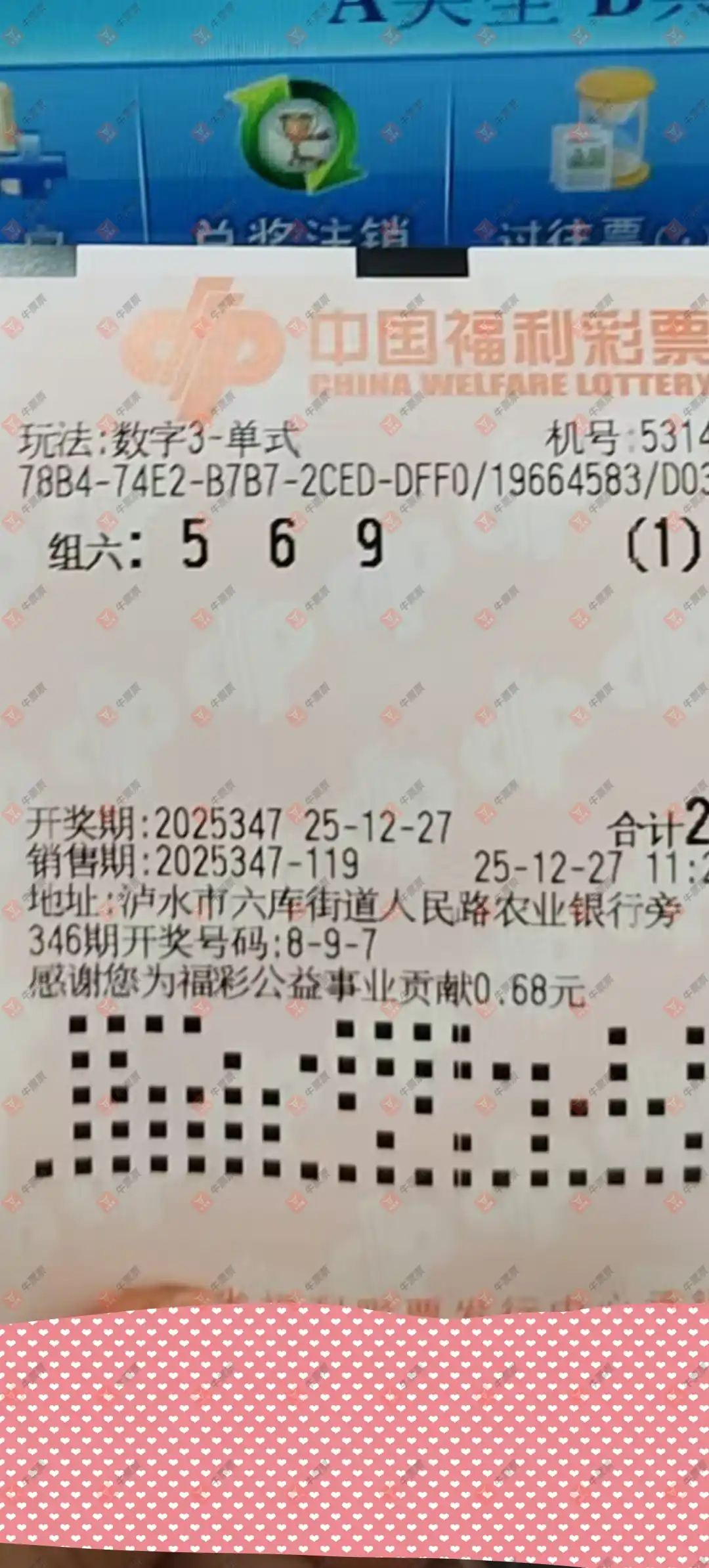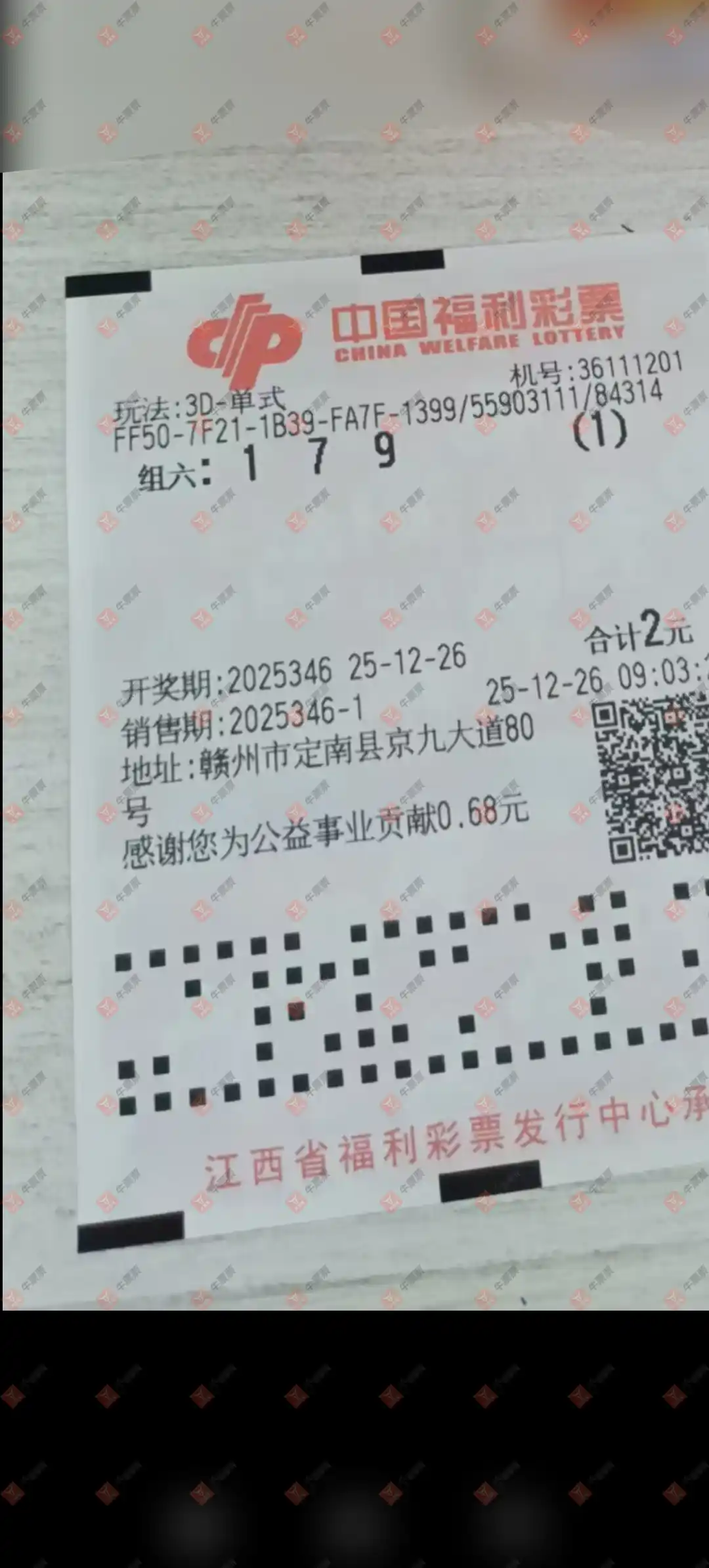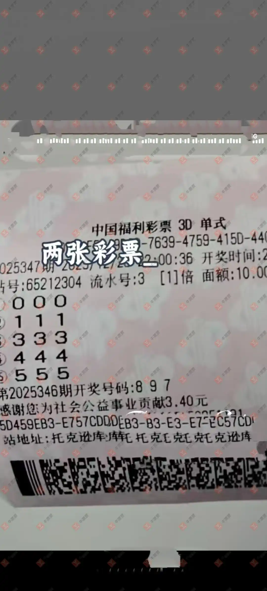 福彩3D 2025346期 晒中