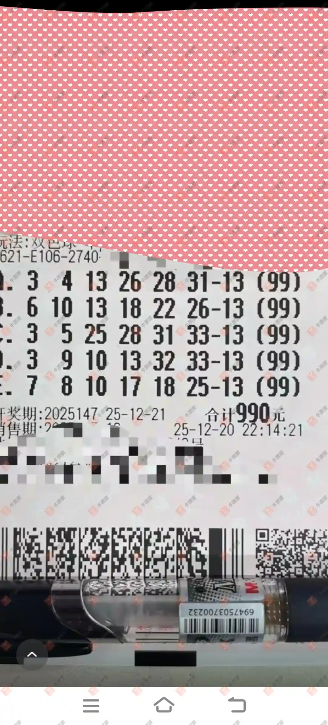 双色球 2025147期 晒中