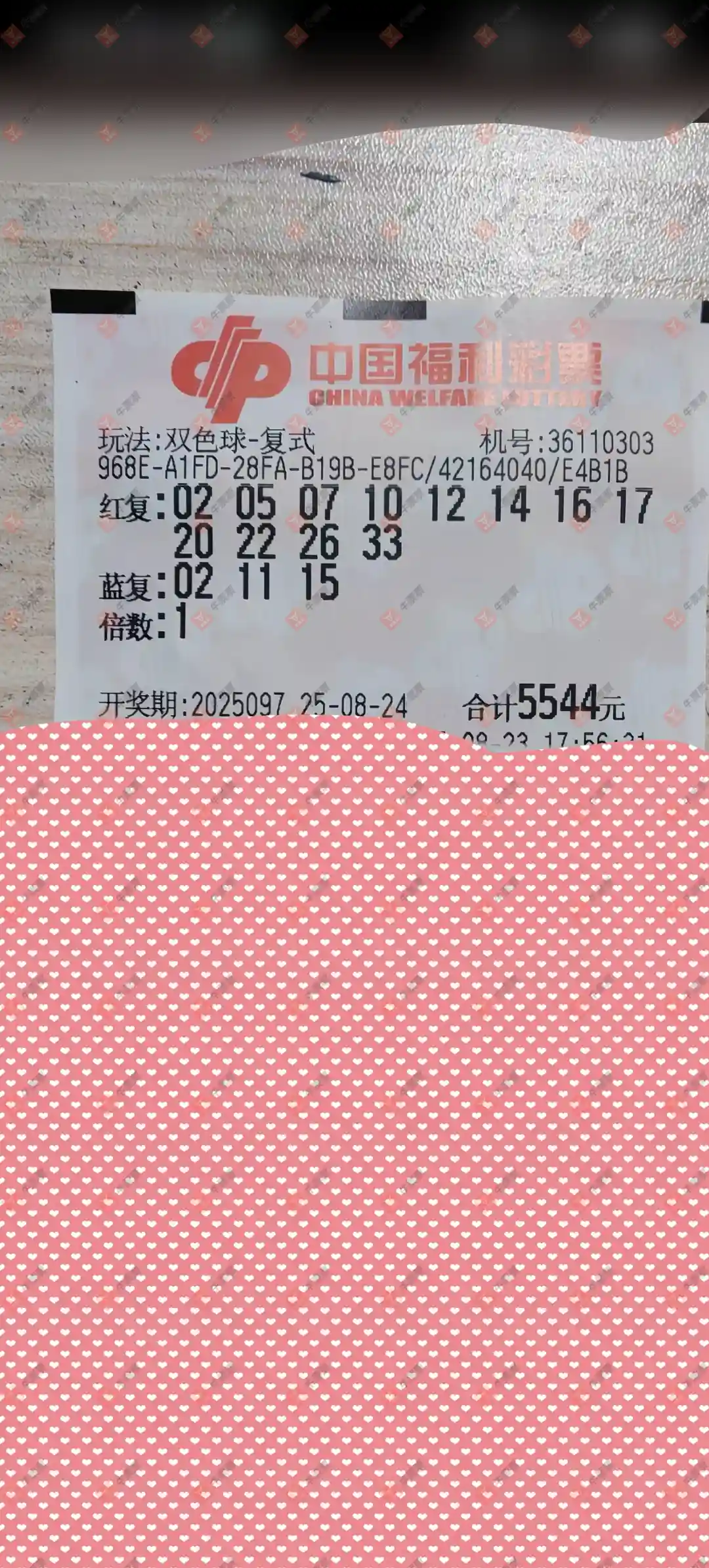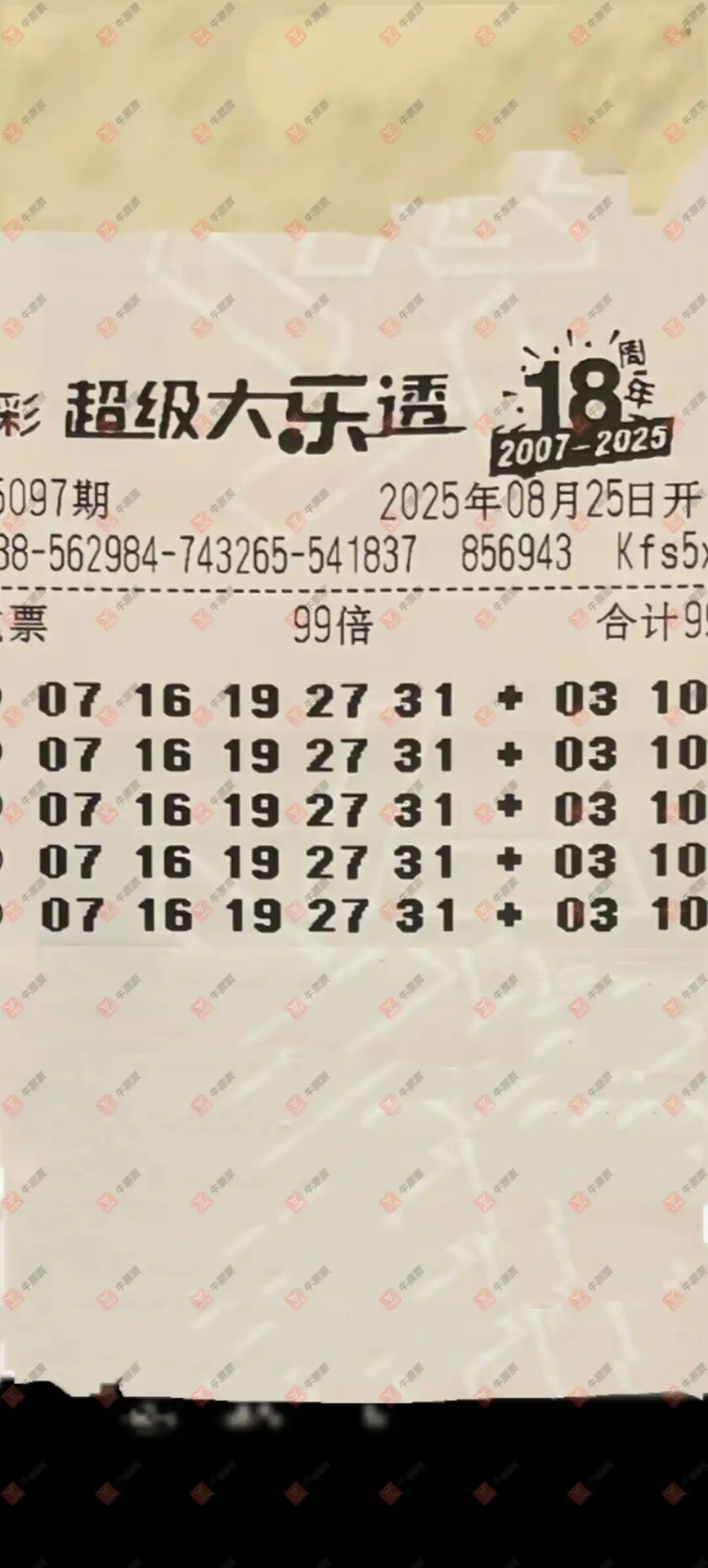 大乐透 2025097期 晒中