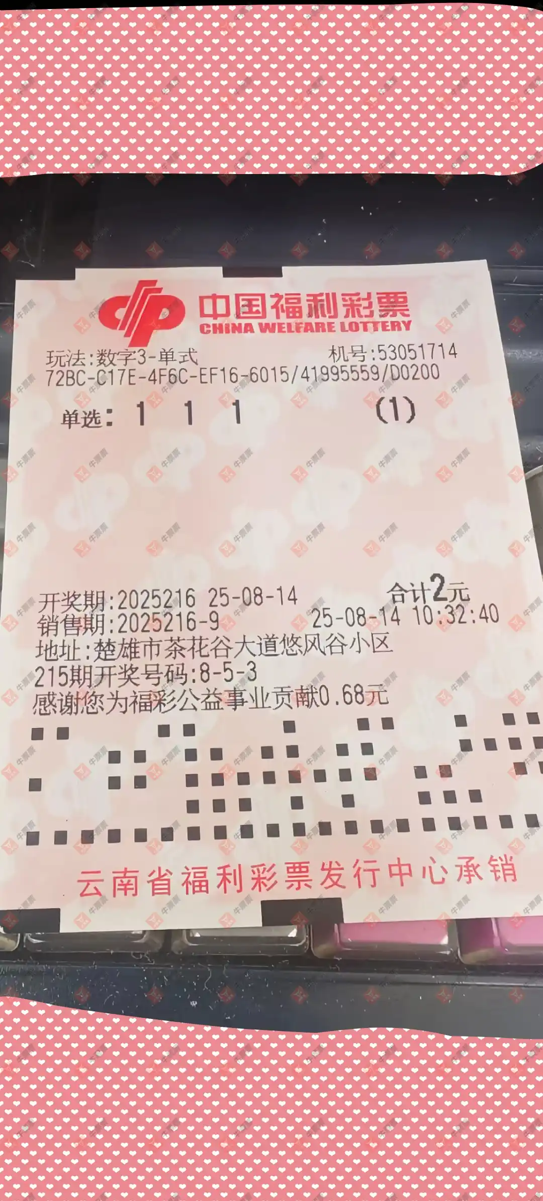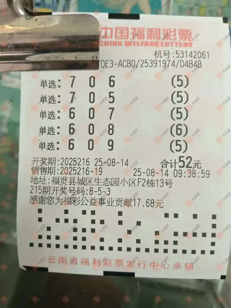 福彩3D 2025216期