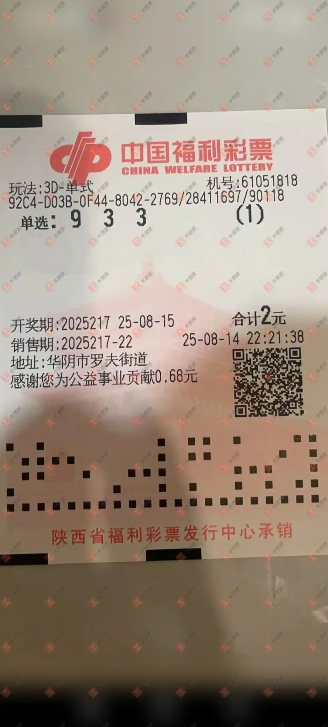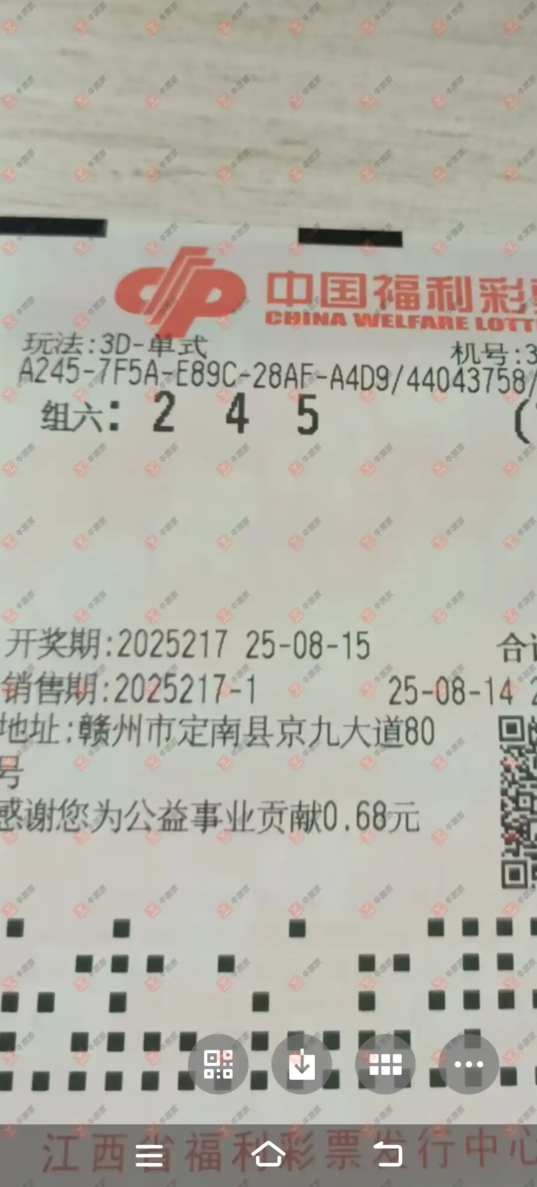 福彩3D 2025217期