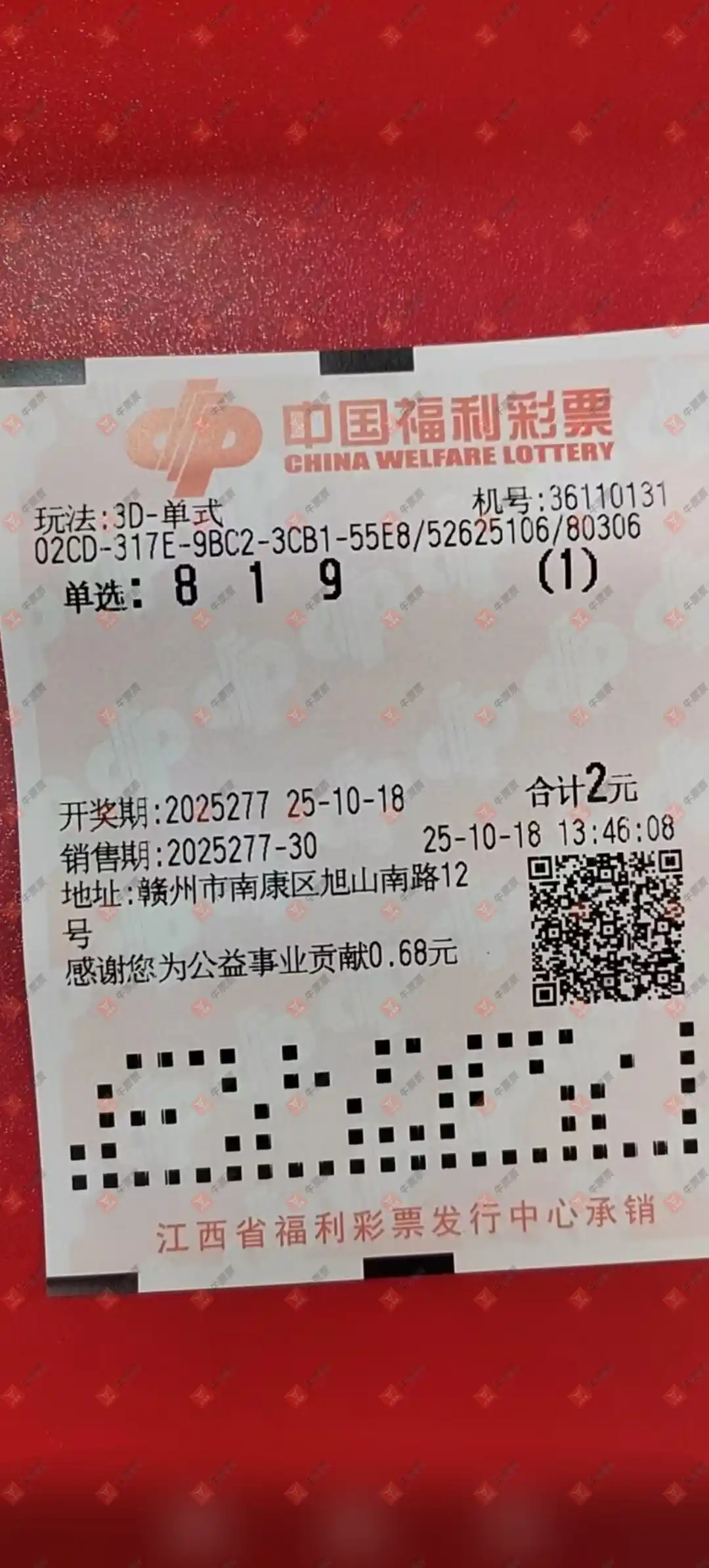 福彩3D 2025277期