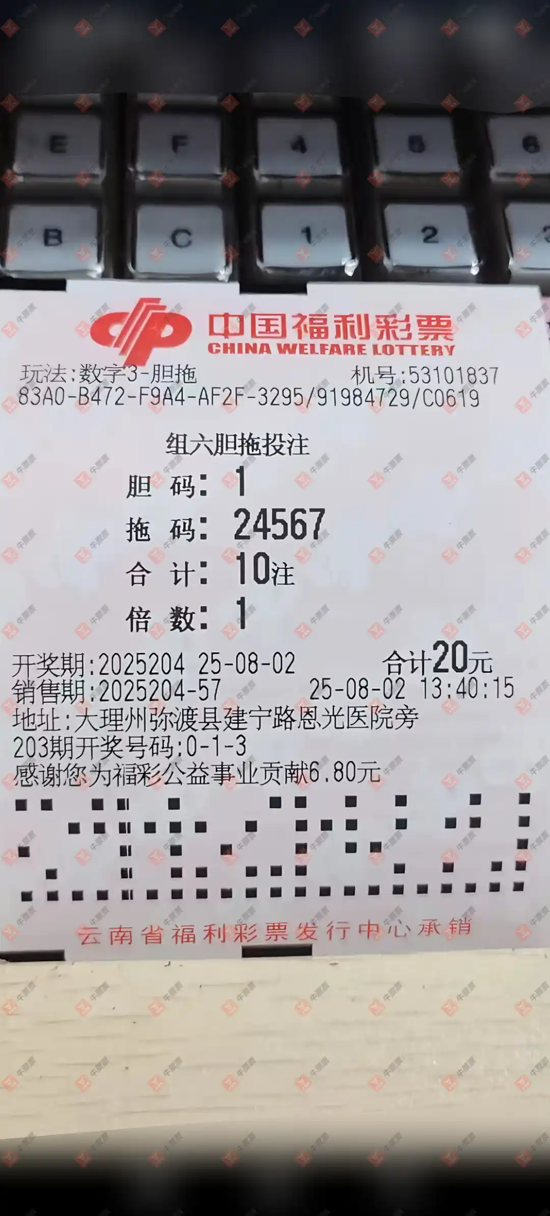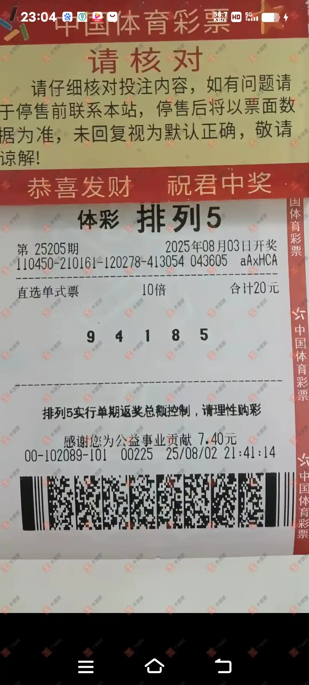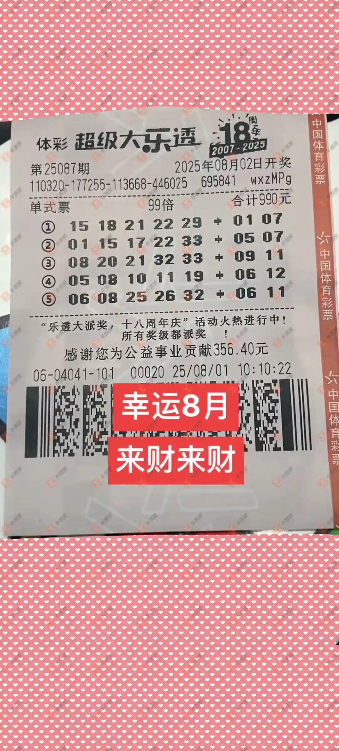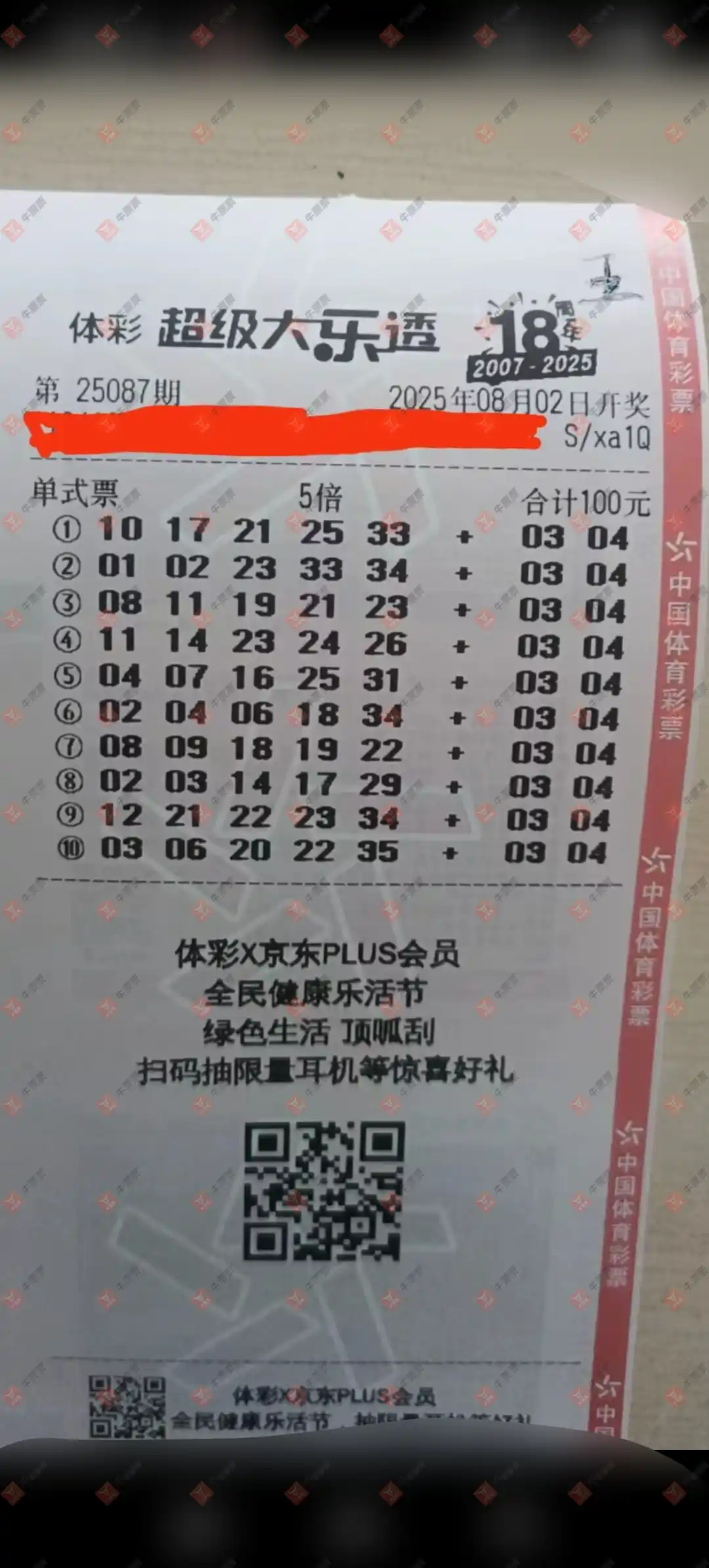大乐透 2025087期 晒中