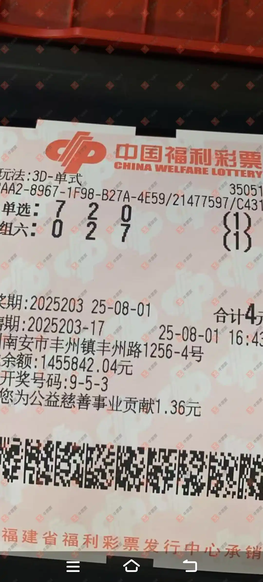 福彩3D 2025203期