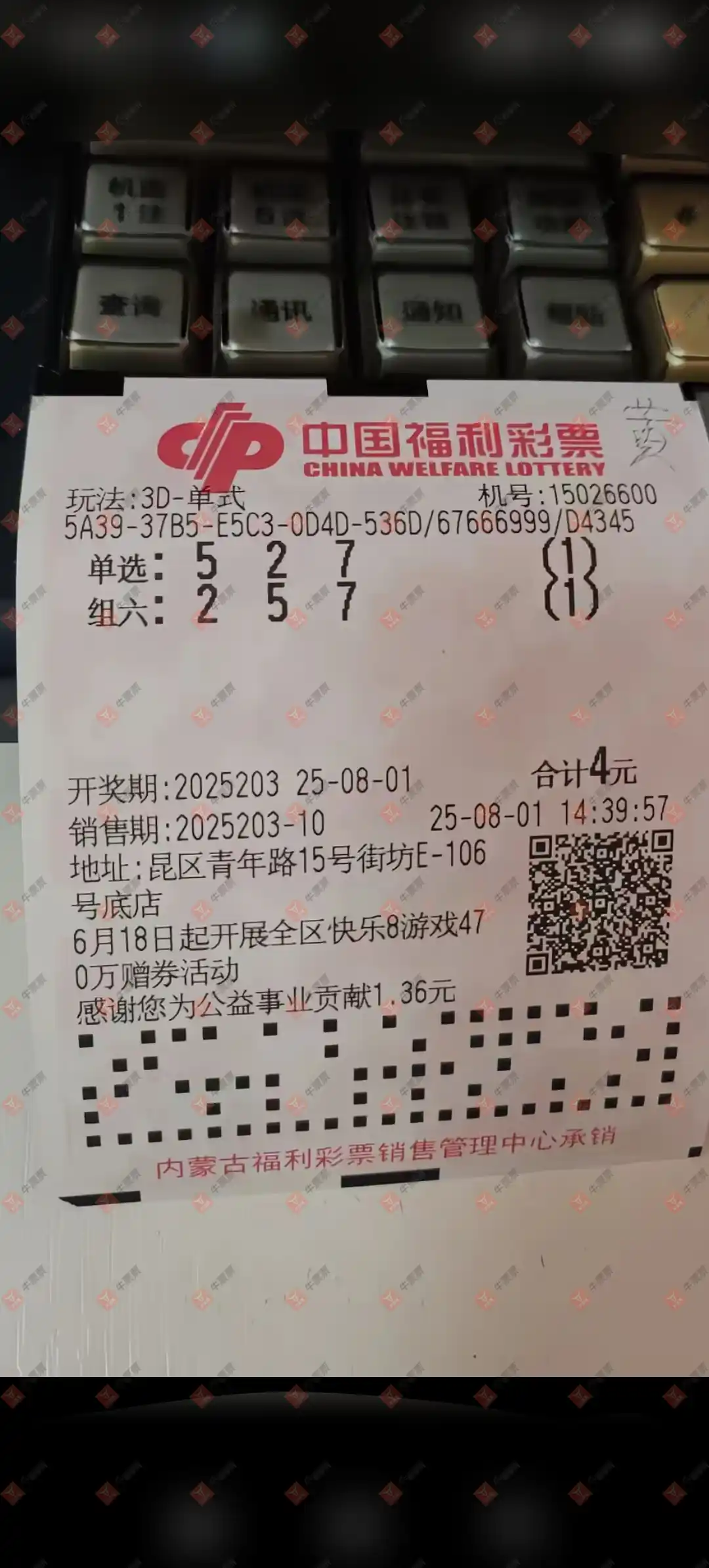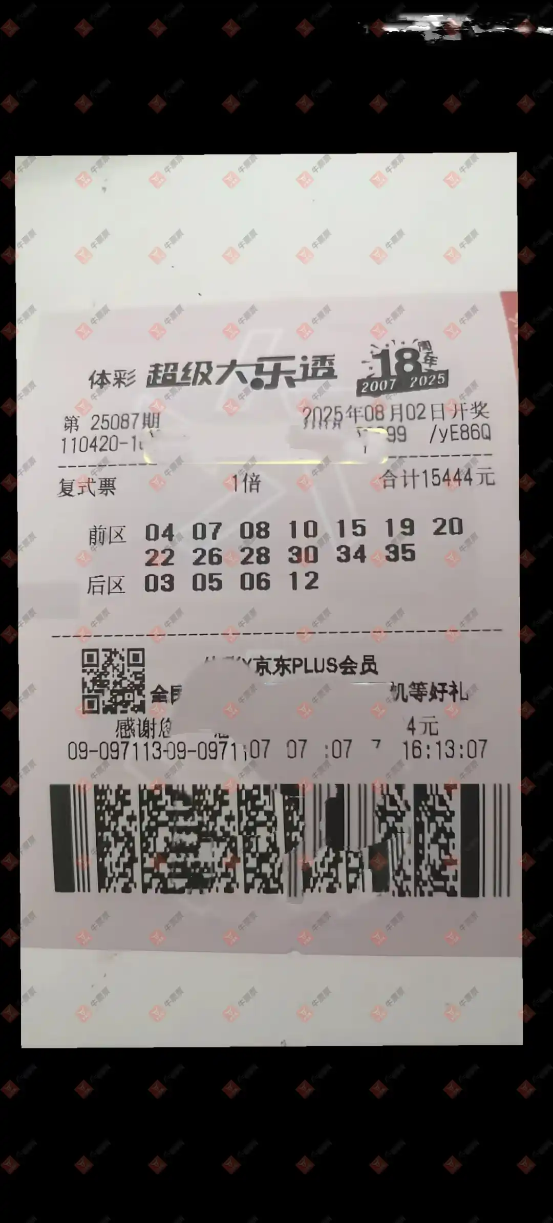 双色球 2025088期 晒中