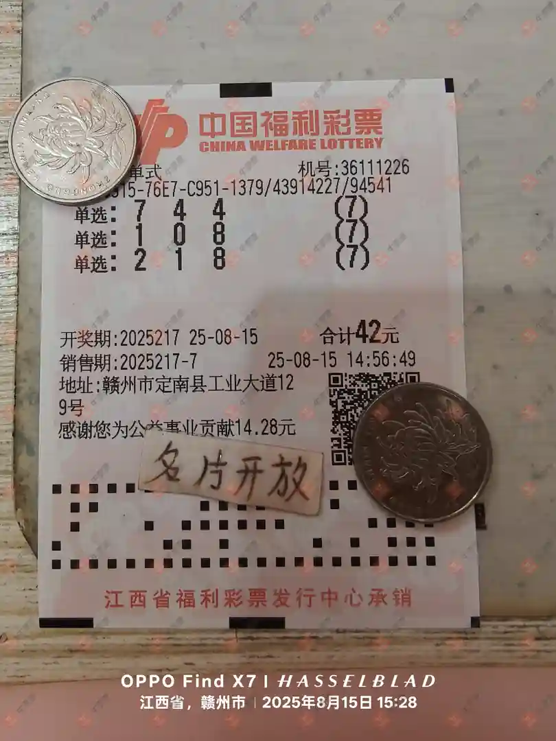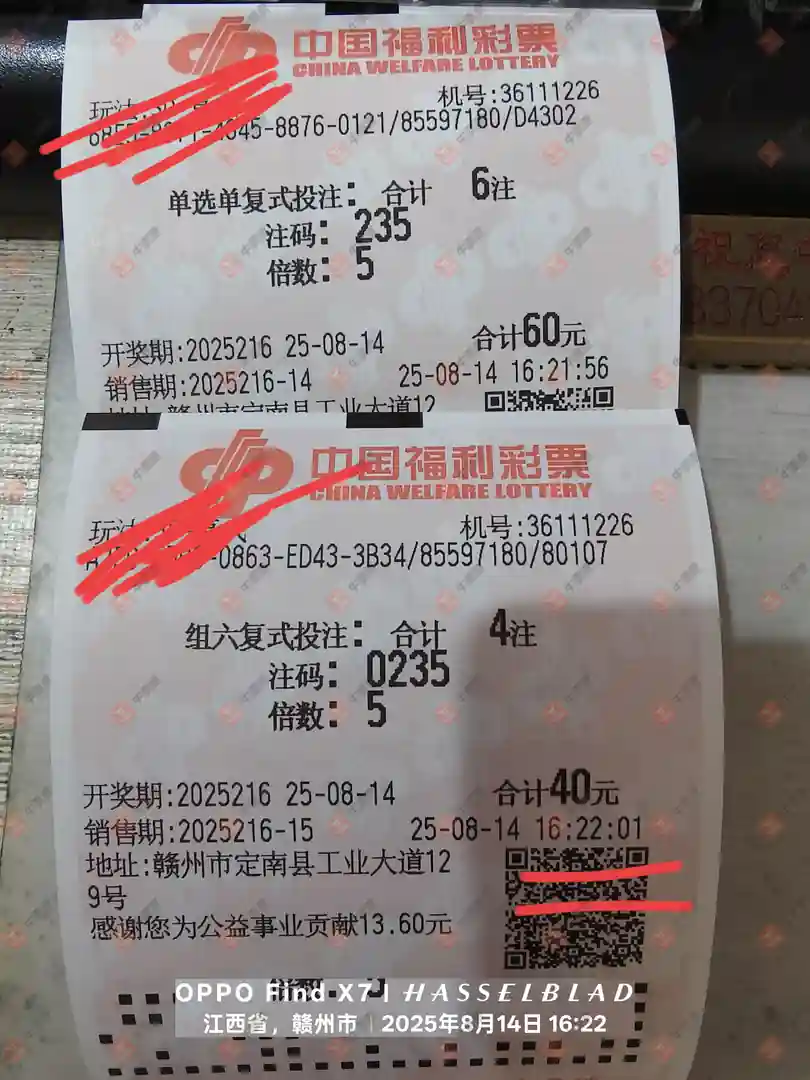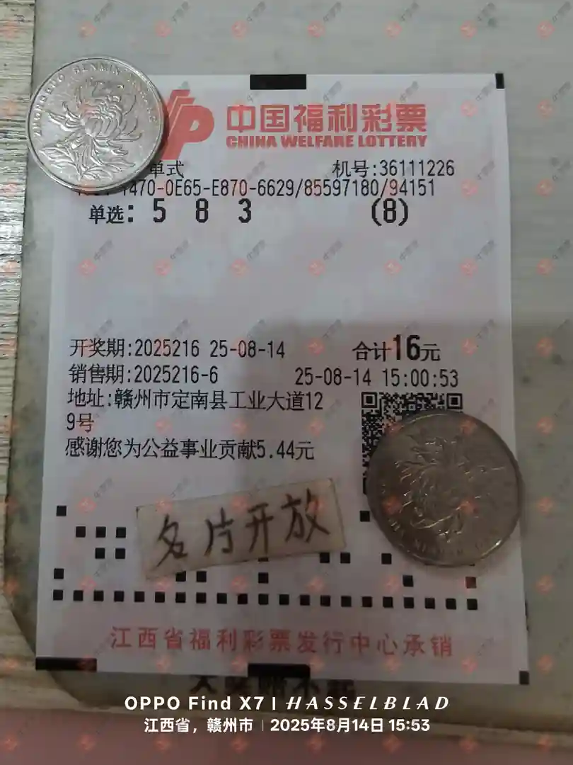 福彩3D 2025215期 晒中