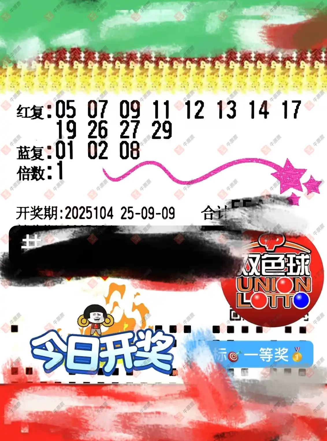 双色球 2025105期 晒中