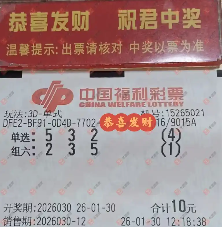 福彩3D 2026030期