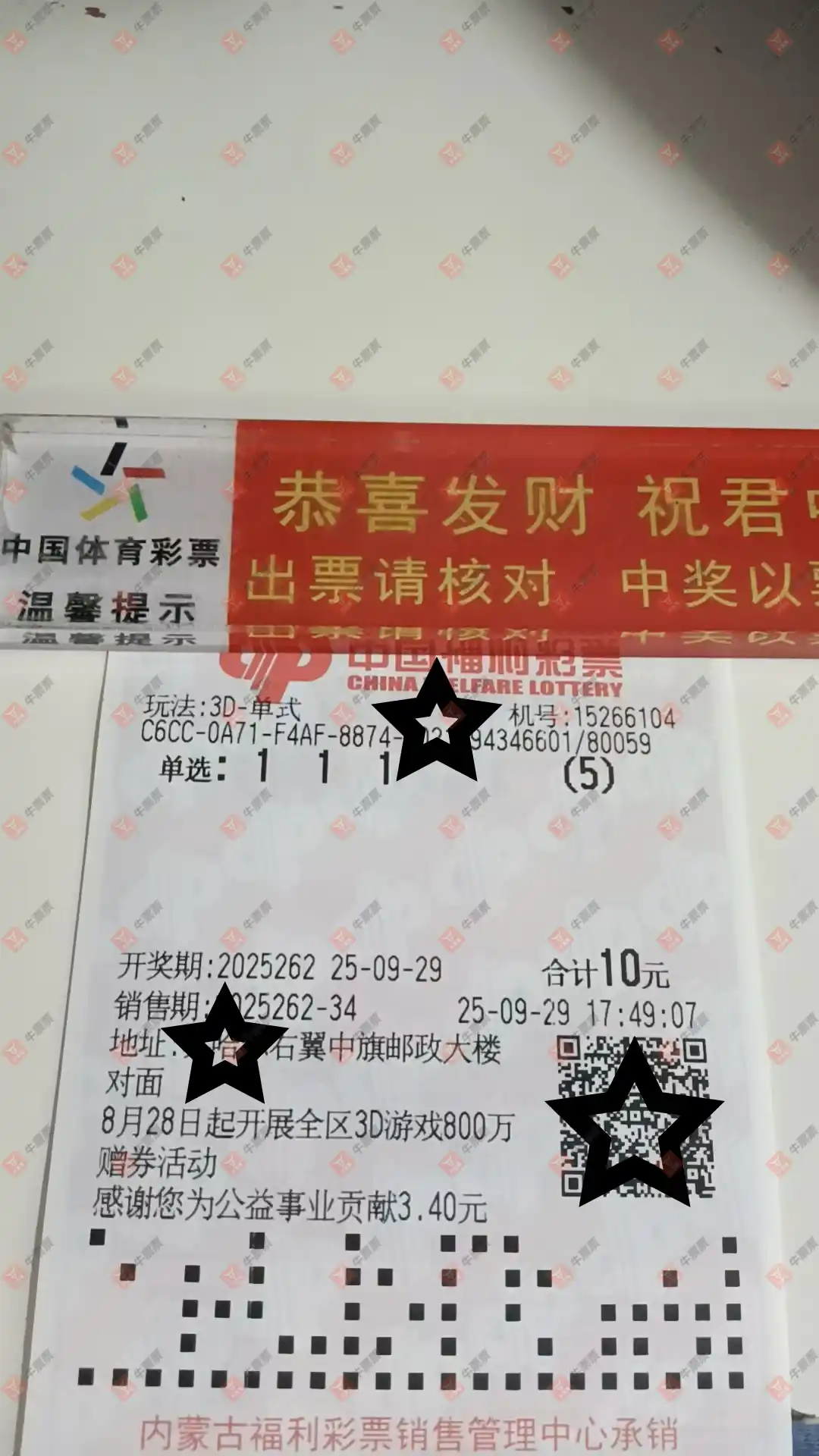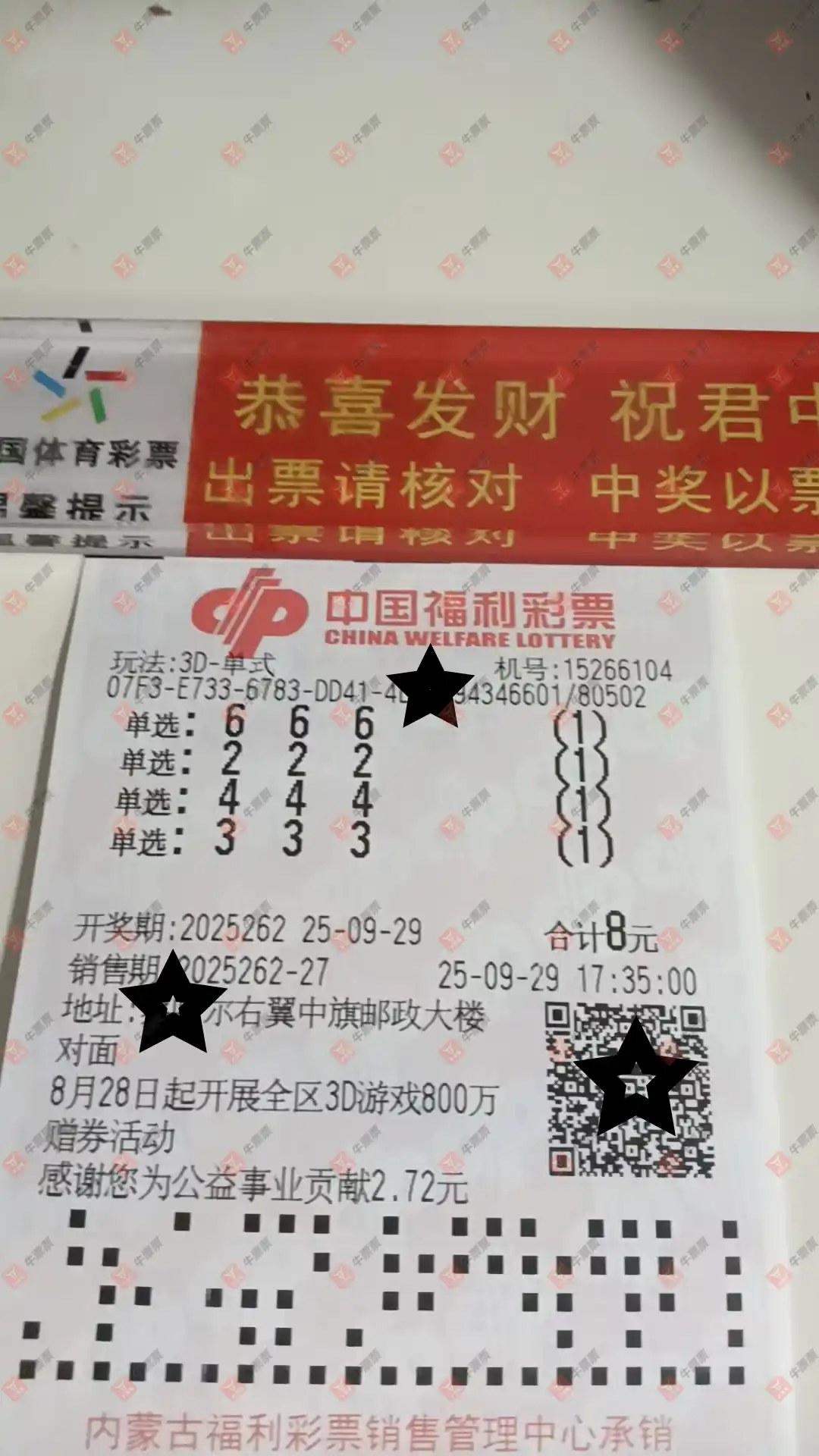 福彩3D 2025262期