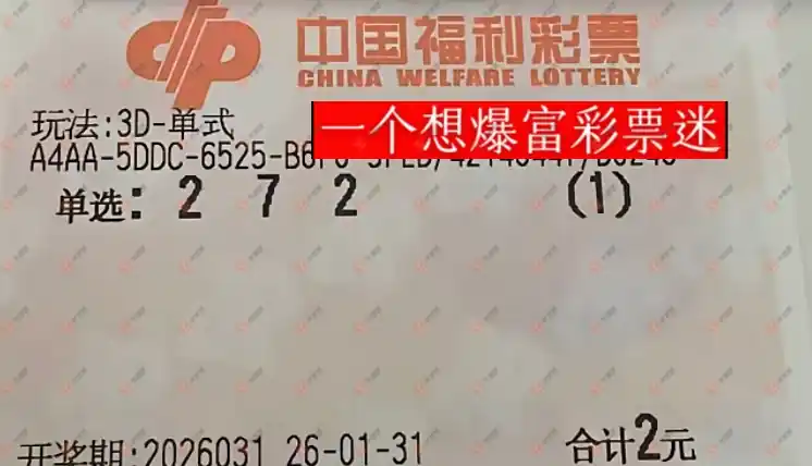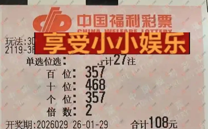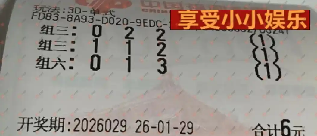 福彩3D 2026029期 晒中