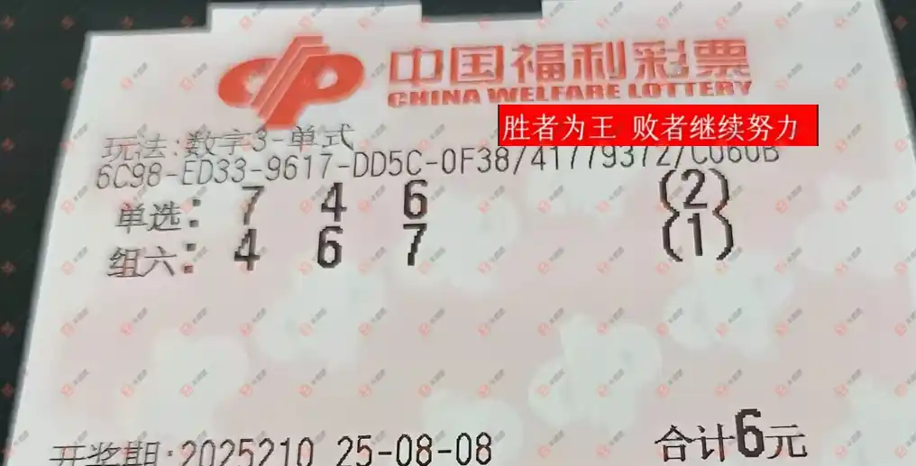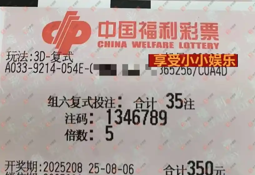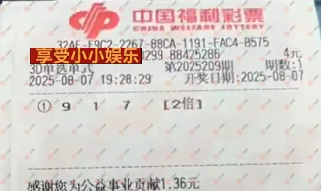 福彩3D 2025209期 晒中