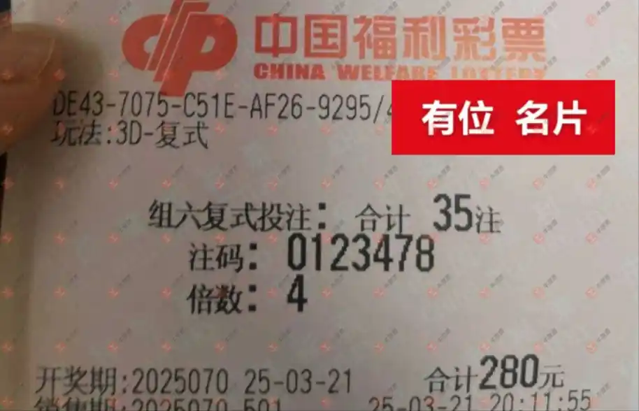 福彩3D 2025071期 晒中