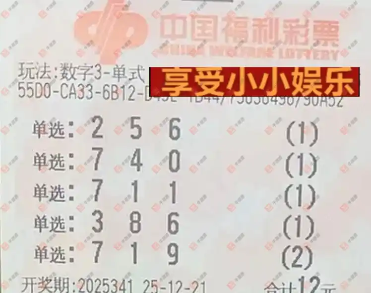 福彩3D 2025341期 晒中