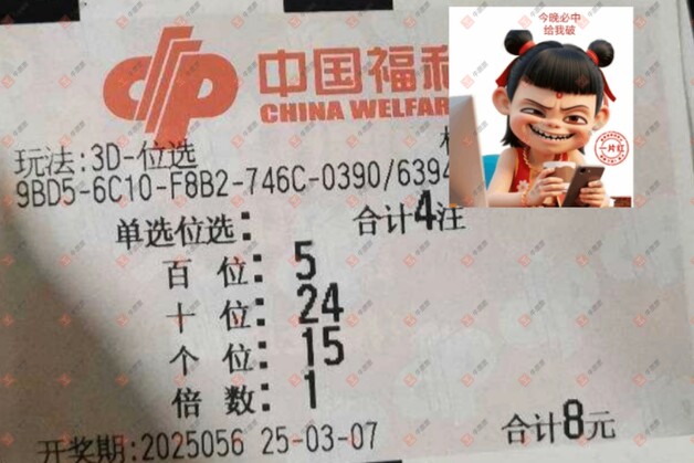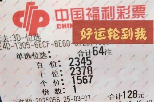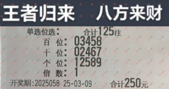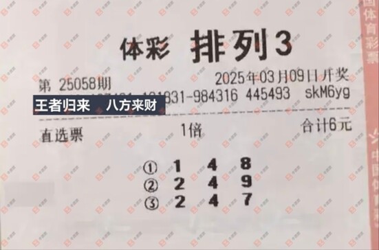 福彩3D 2025058期 晒中
