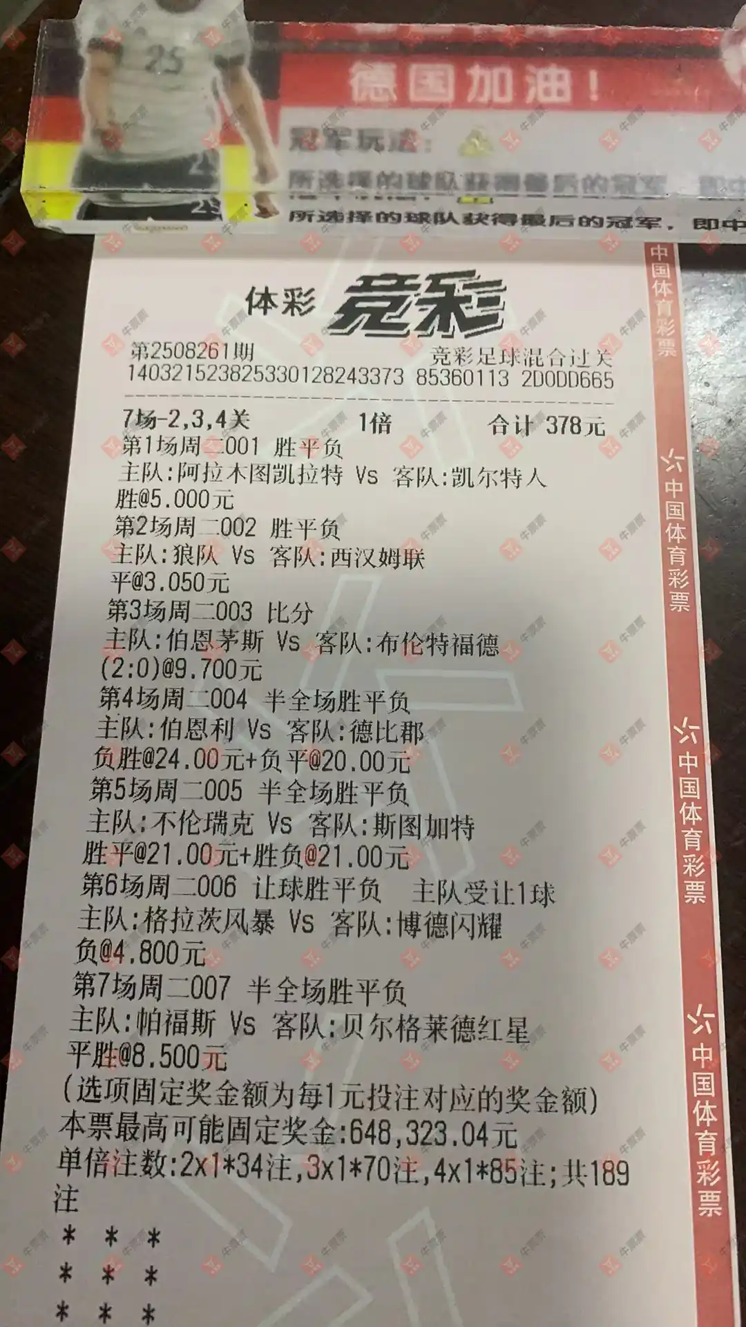 竞彩 20250823期 晒中