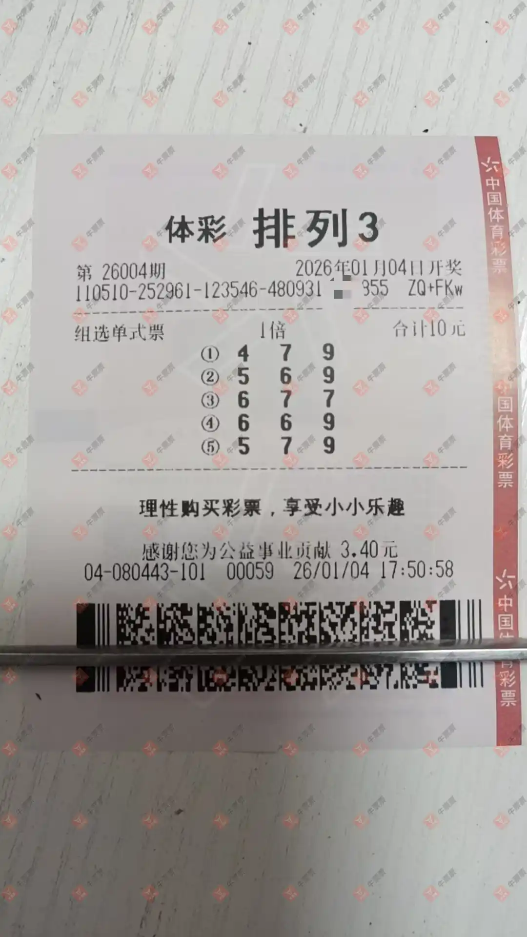 排列三 2026004期