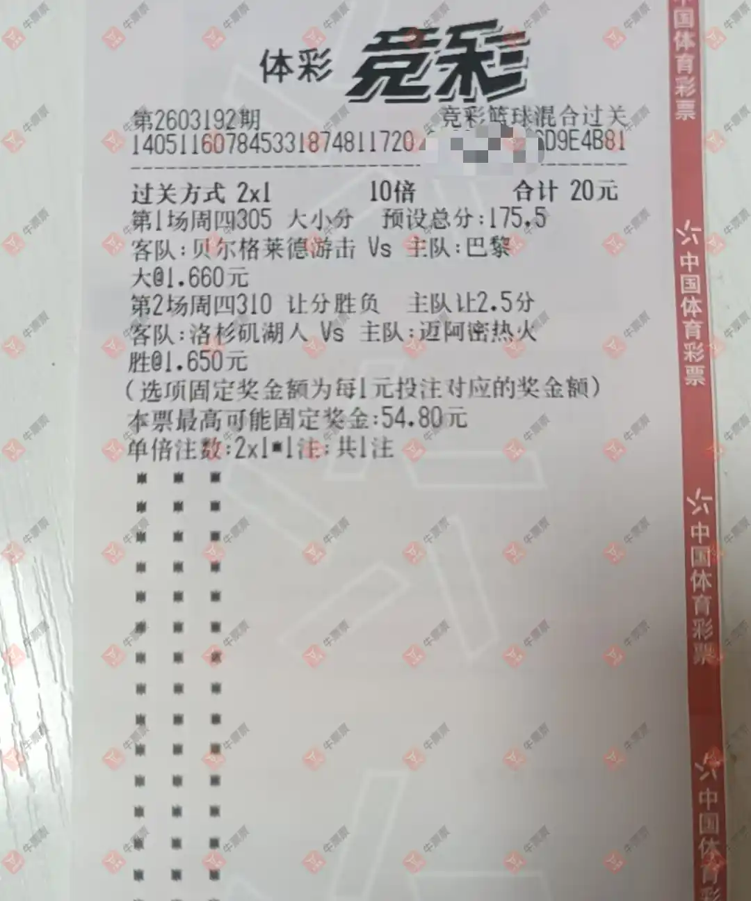 竞彩 20260320期 晒中