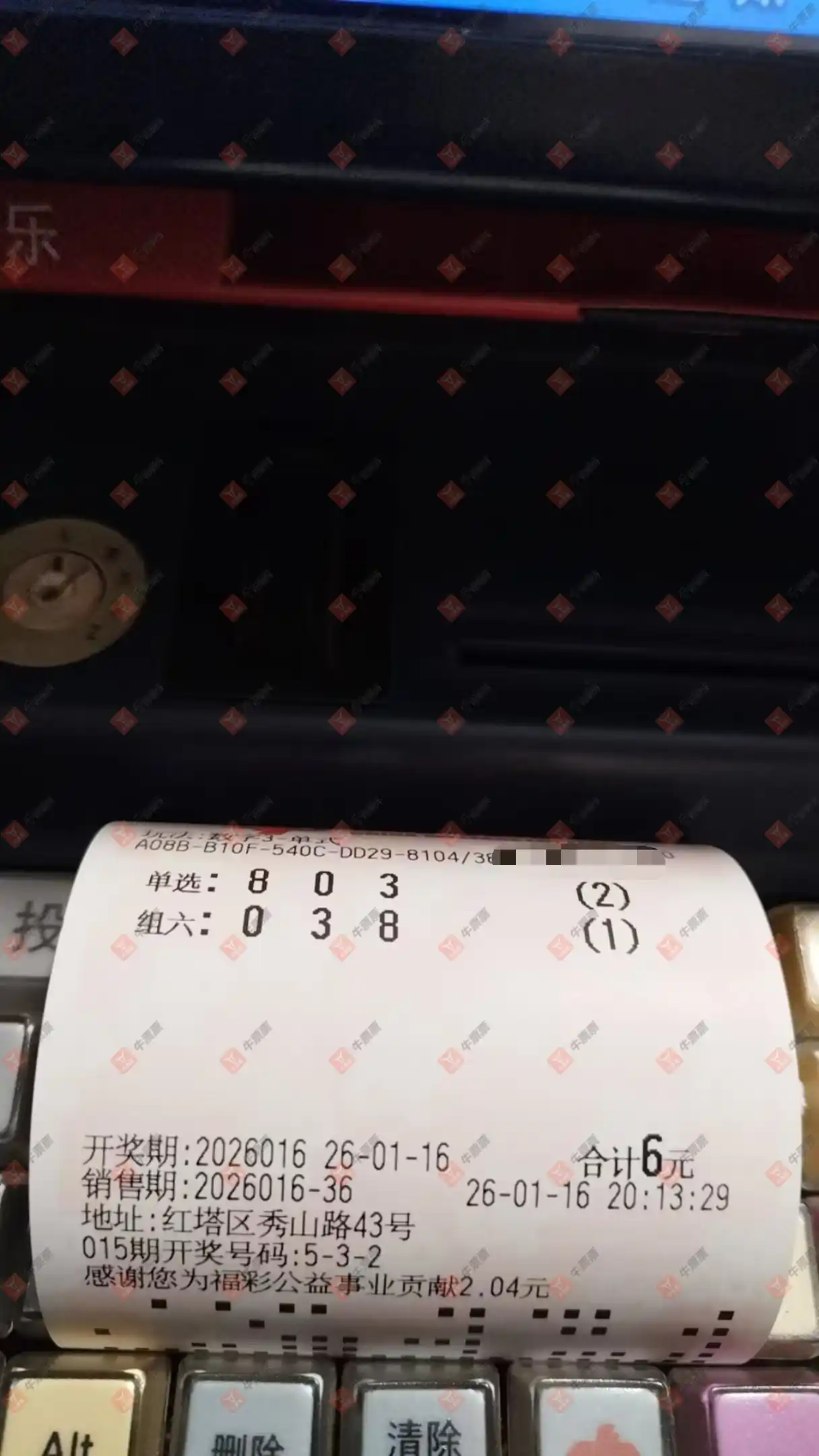 福彩3D 2026012期 晒中