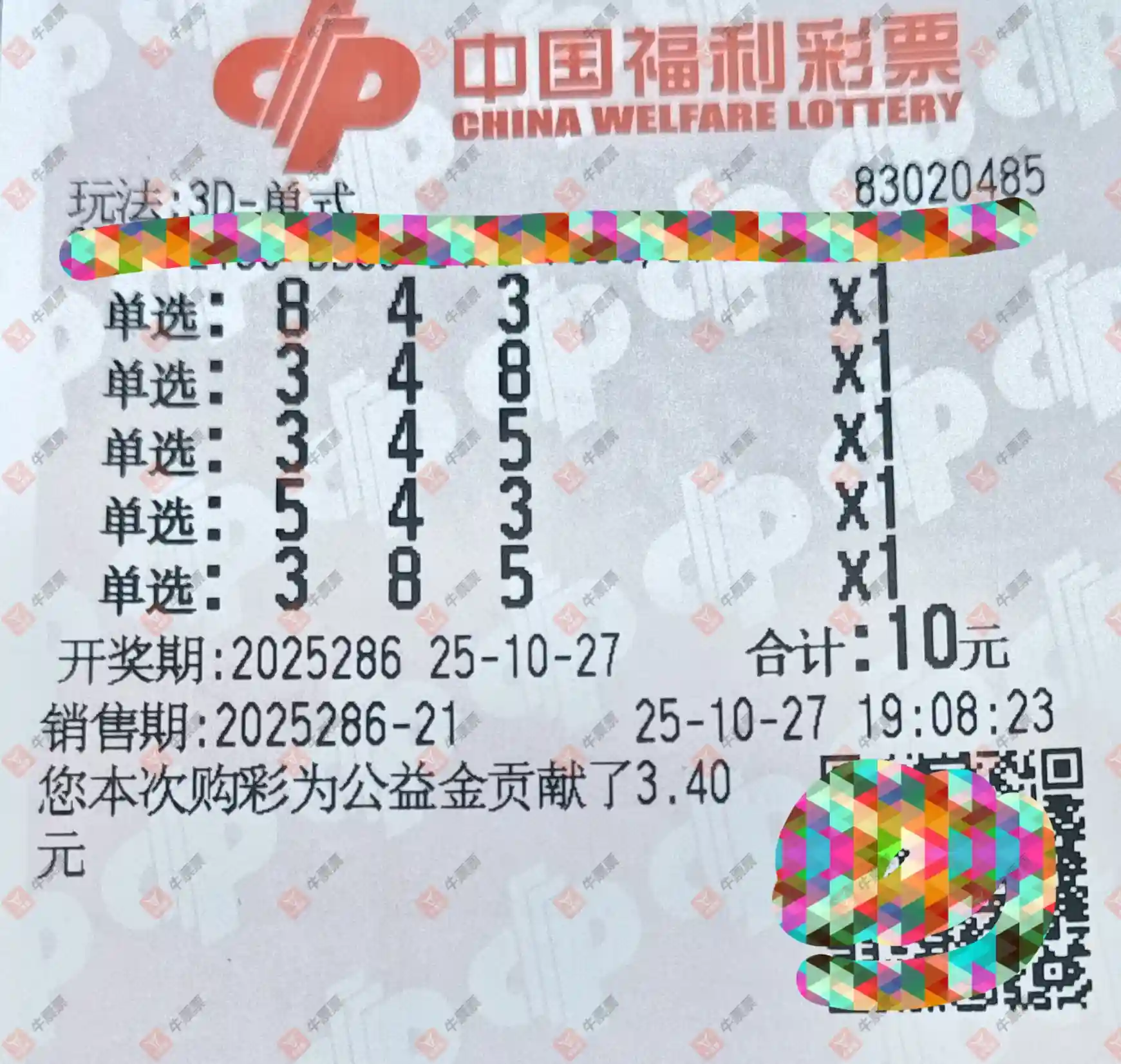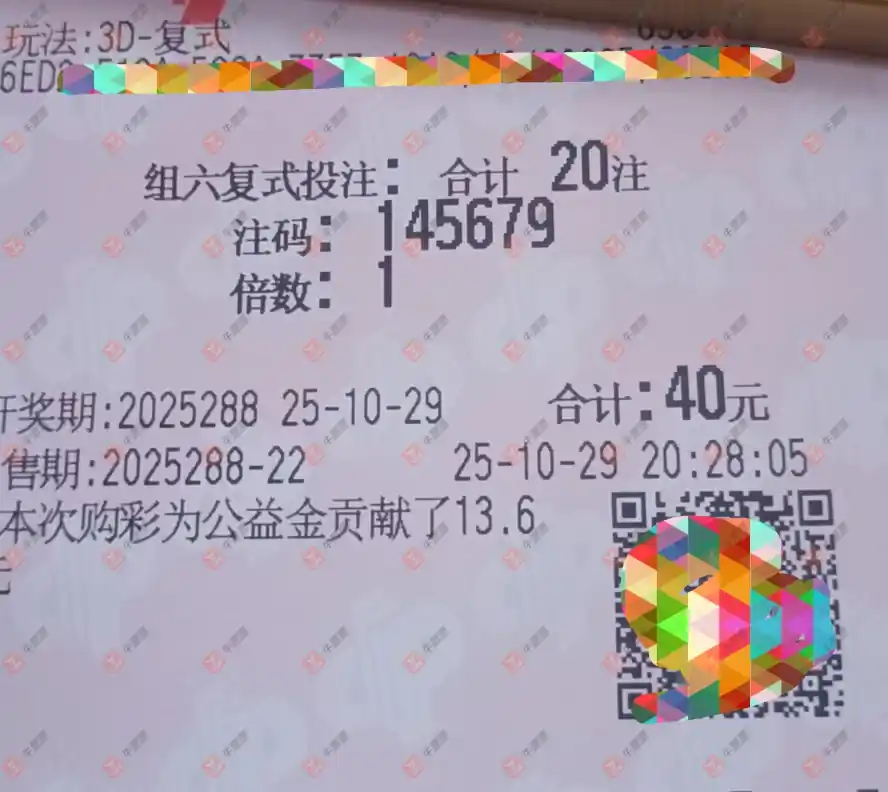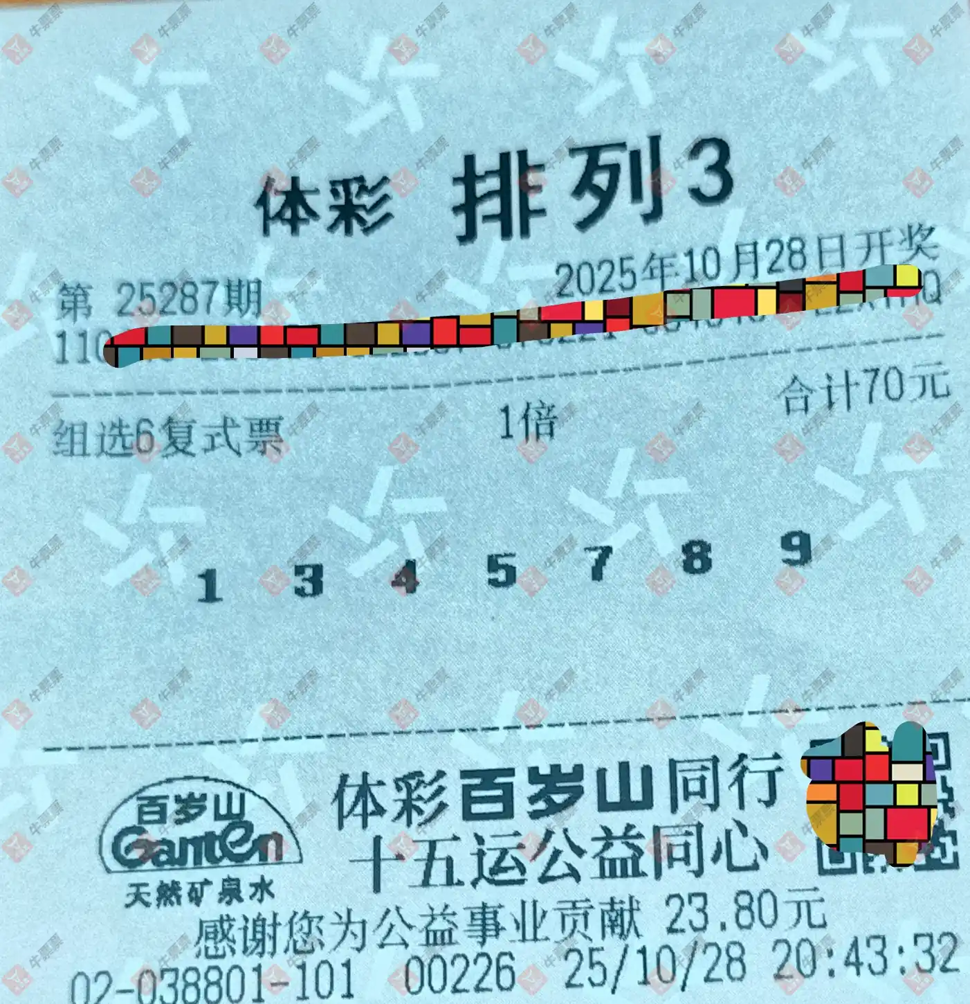 福彩3D 2025287期 晒中