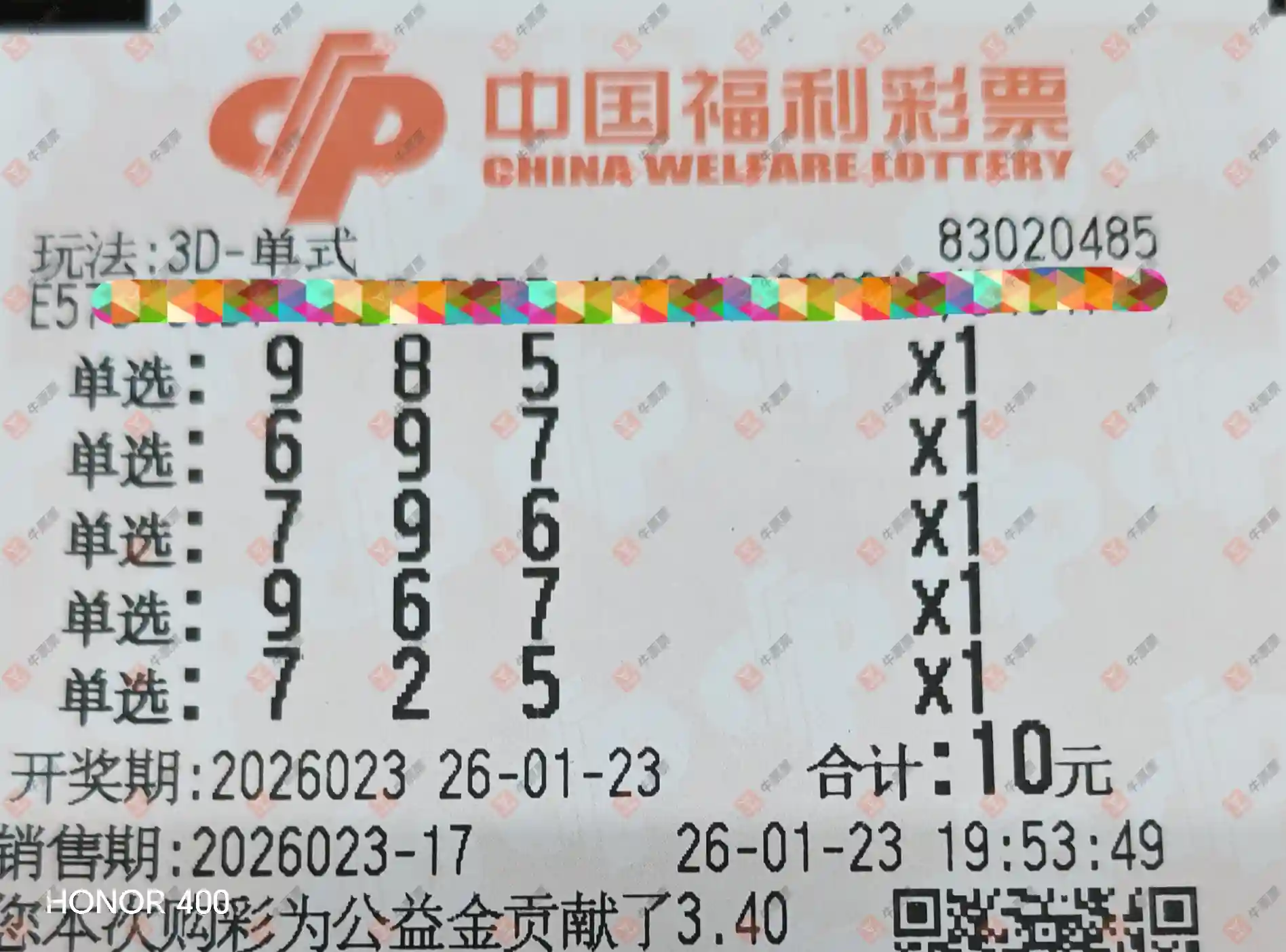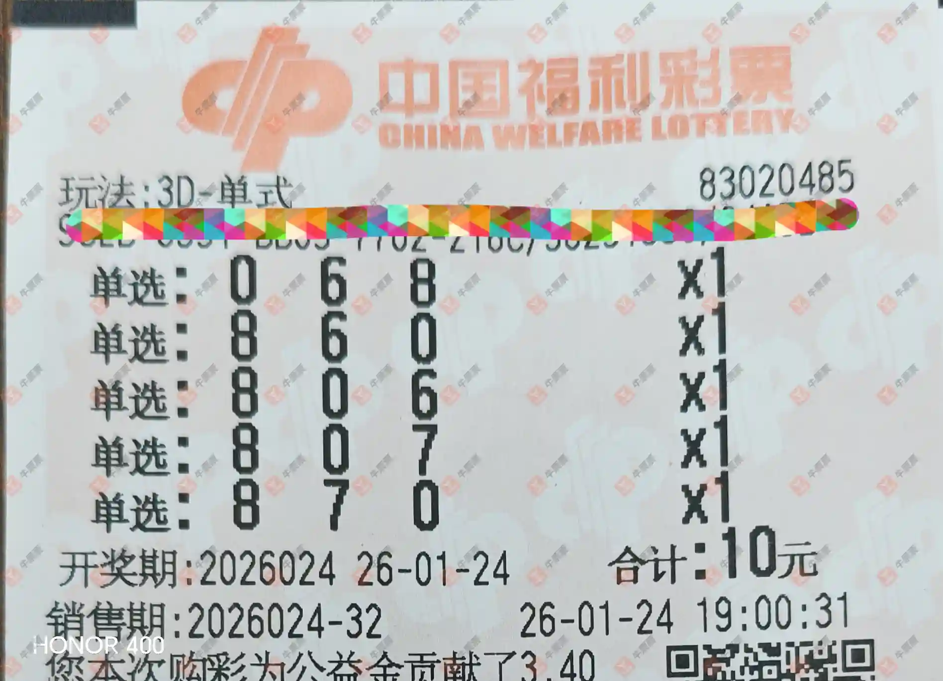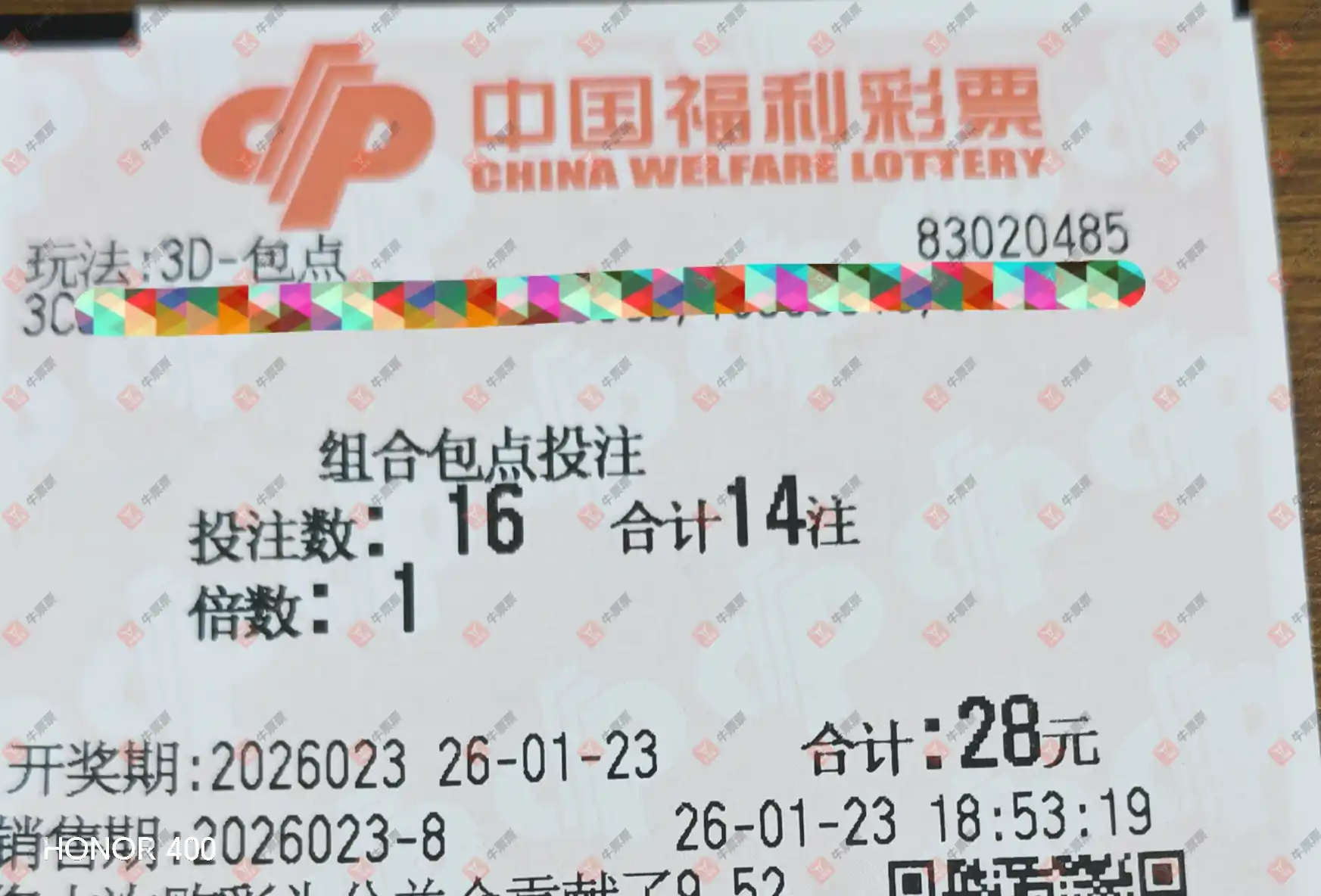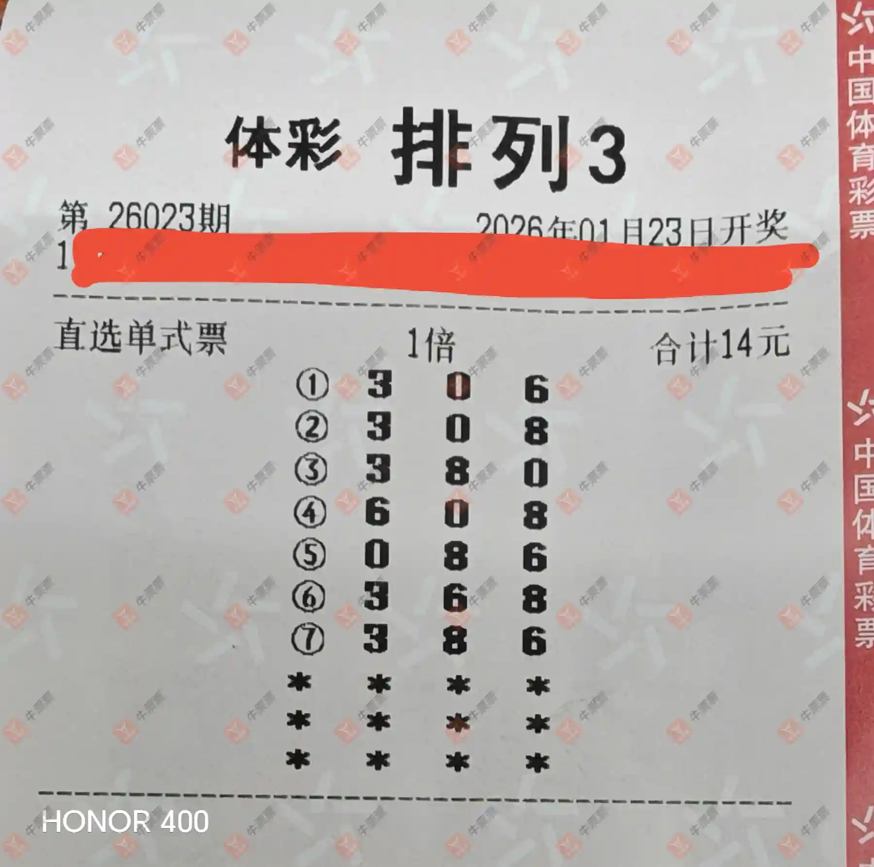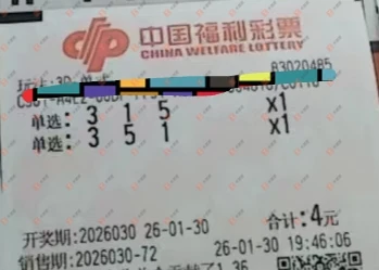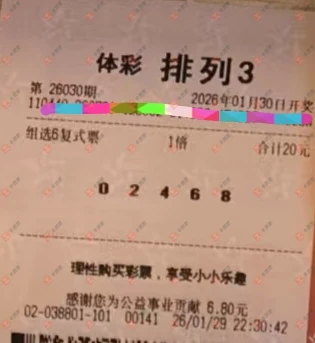 福彩3D 2026030期 晒中