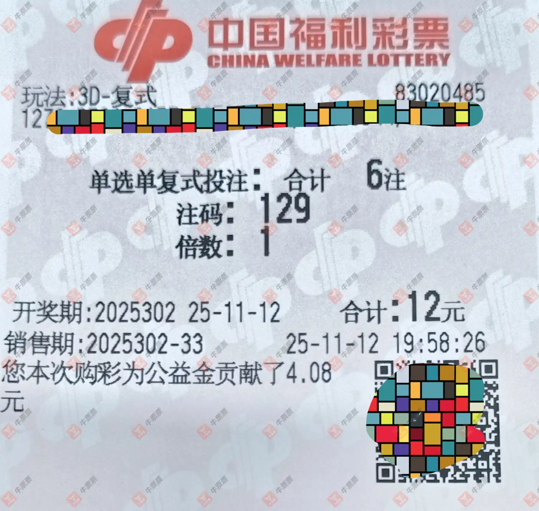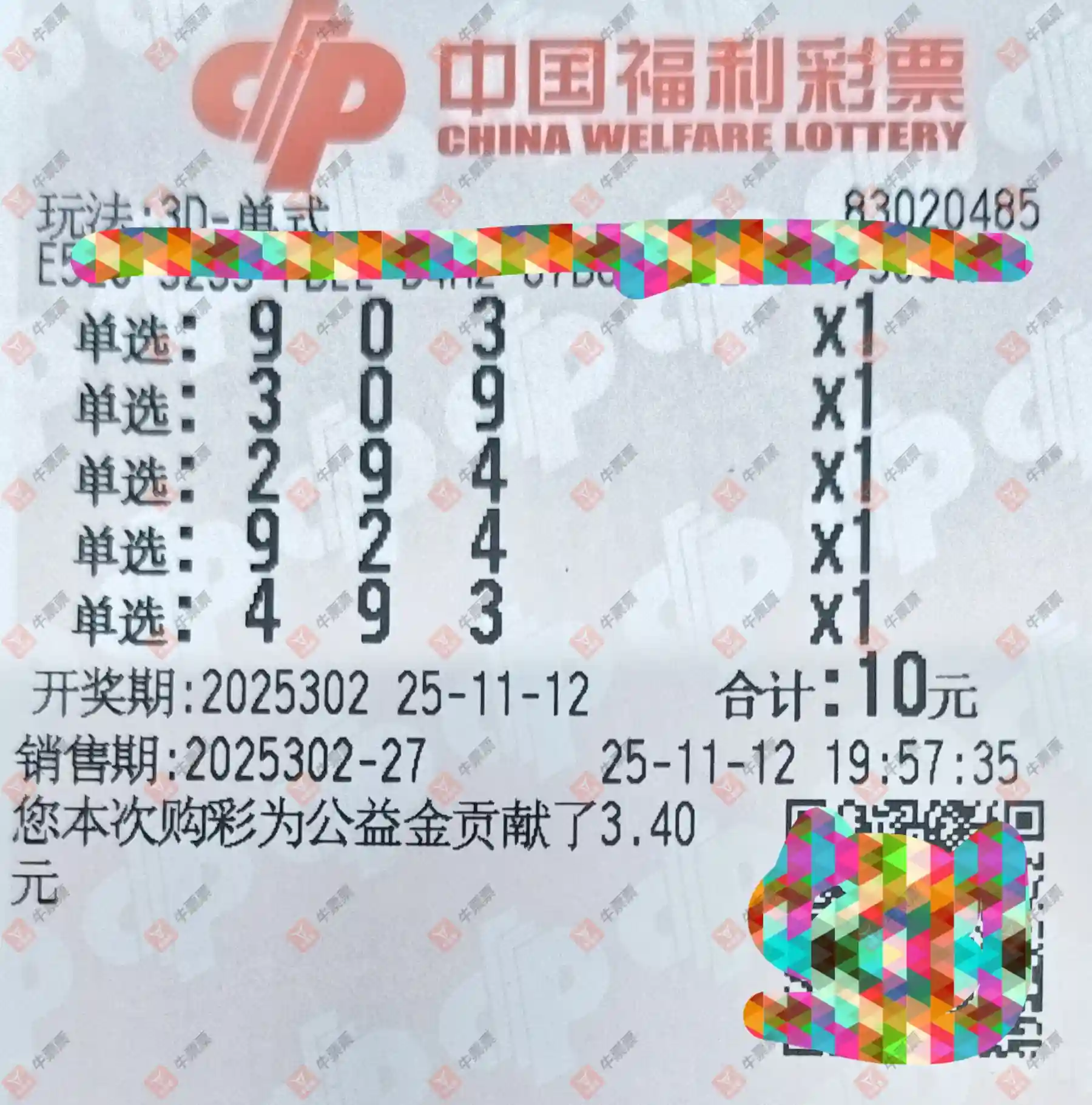 福彩3D 2025302期
