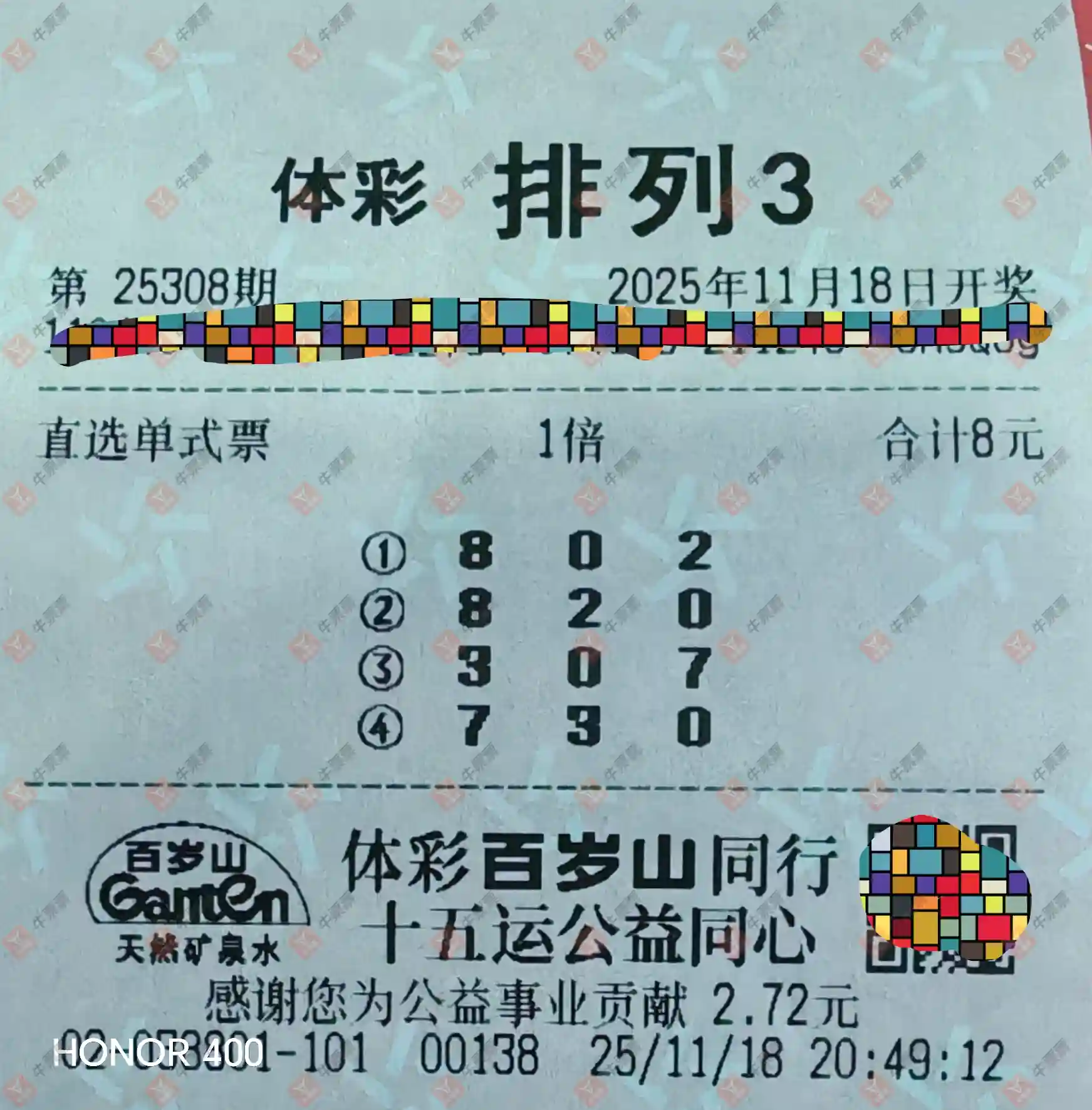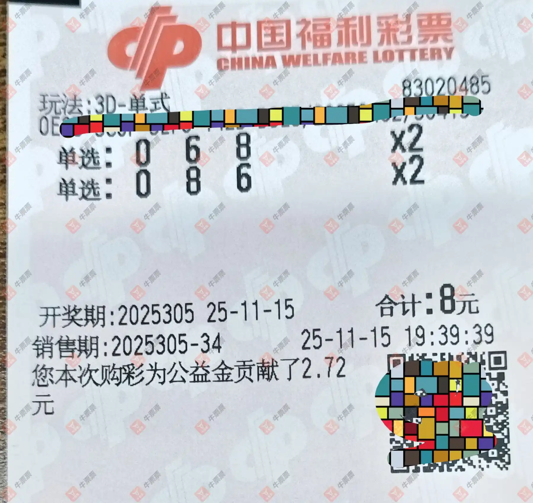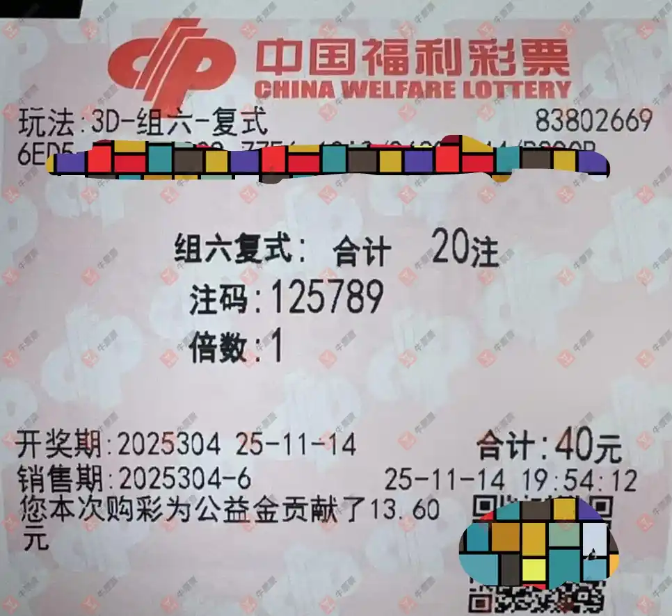 福彩3D 2025304期 晒中