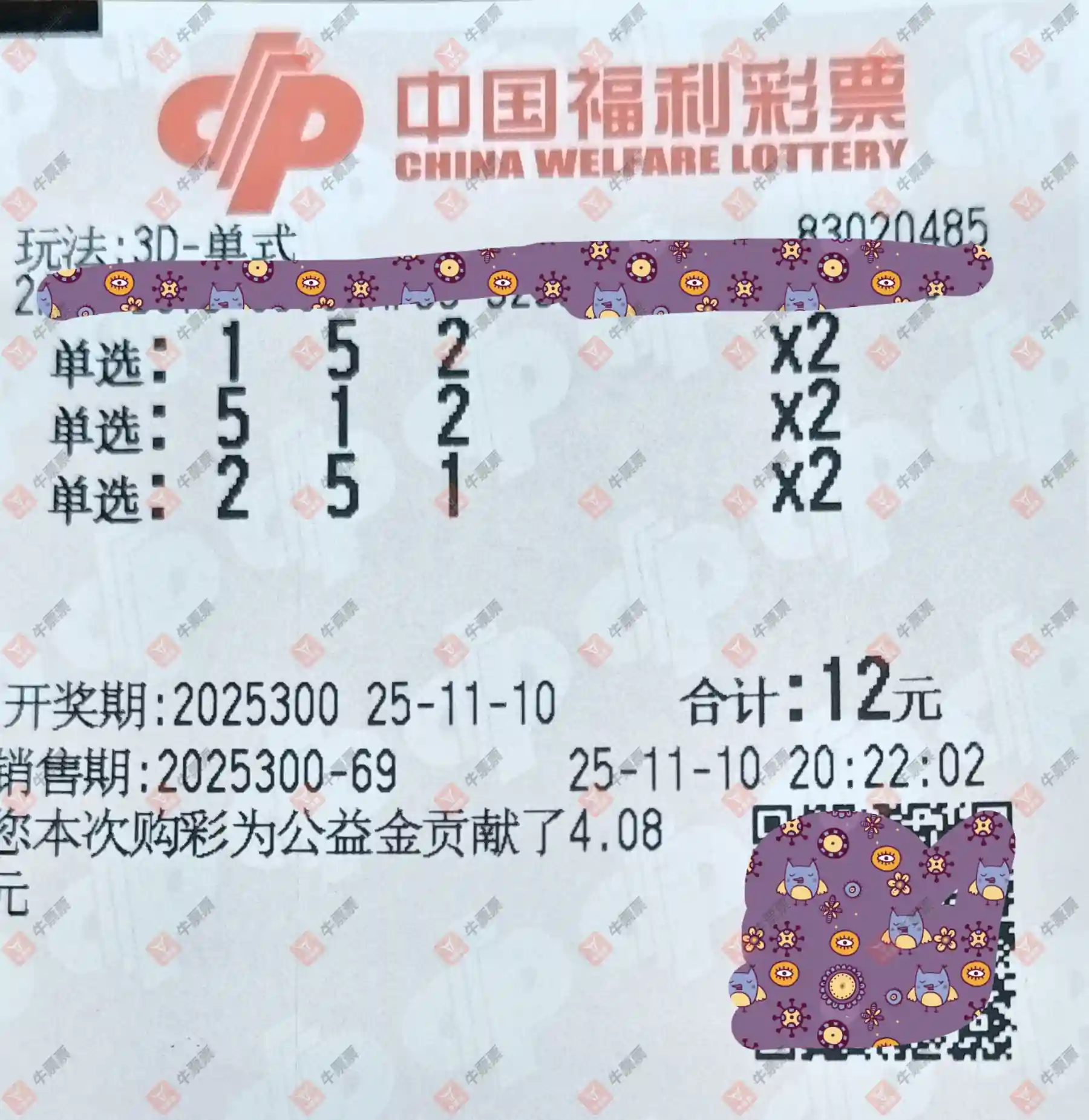 福彩3D 2025302期