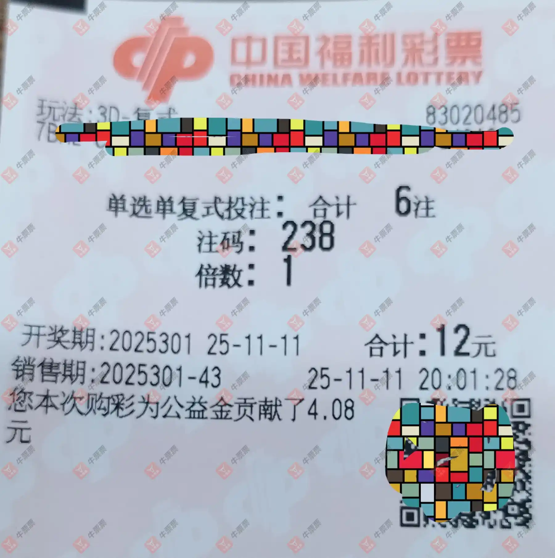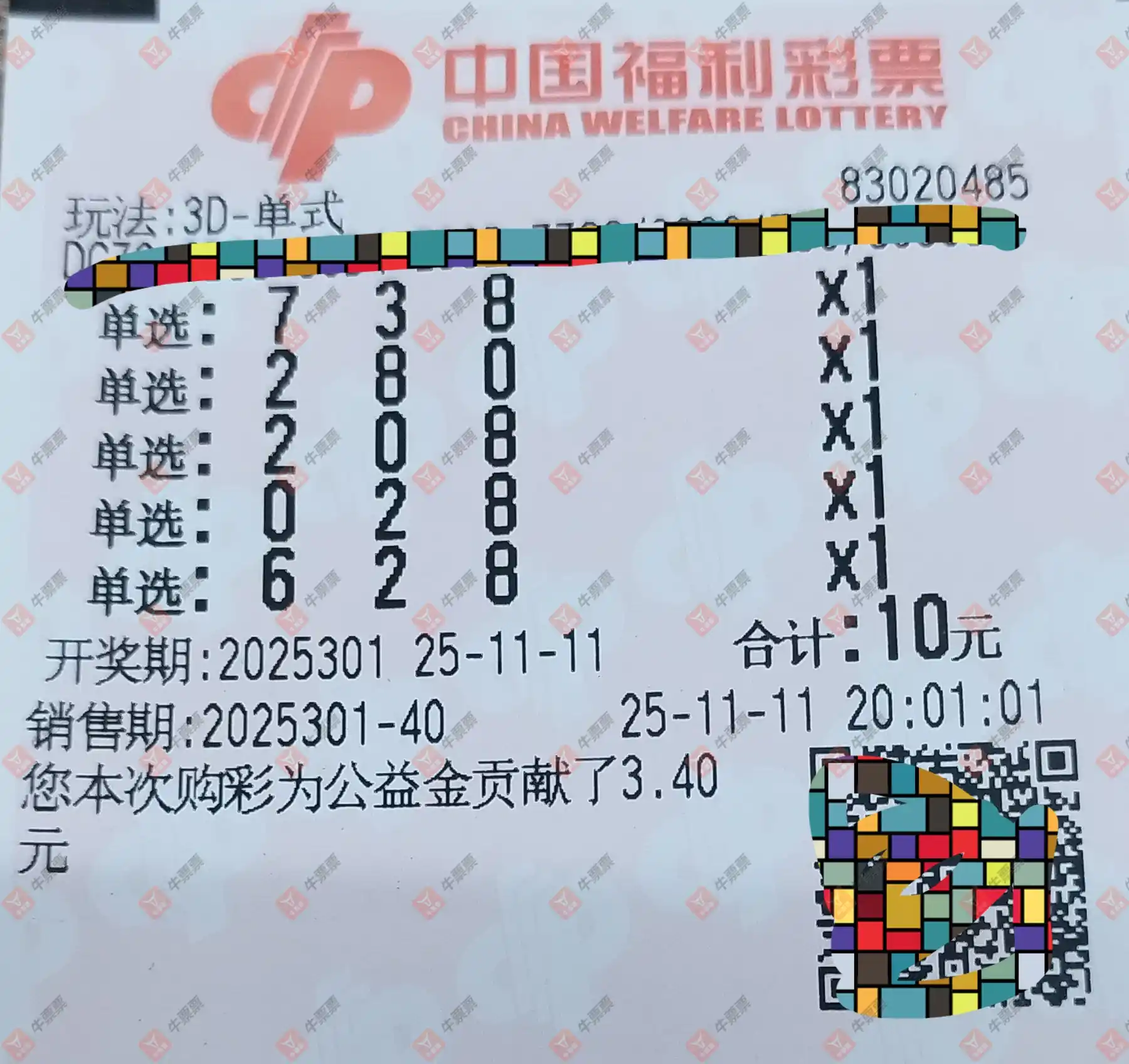 福彩3D 2025301期