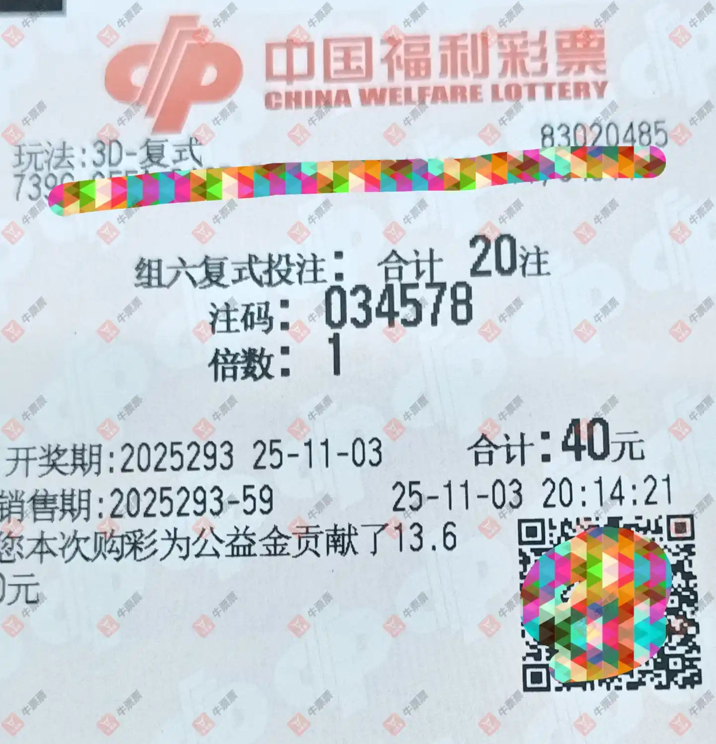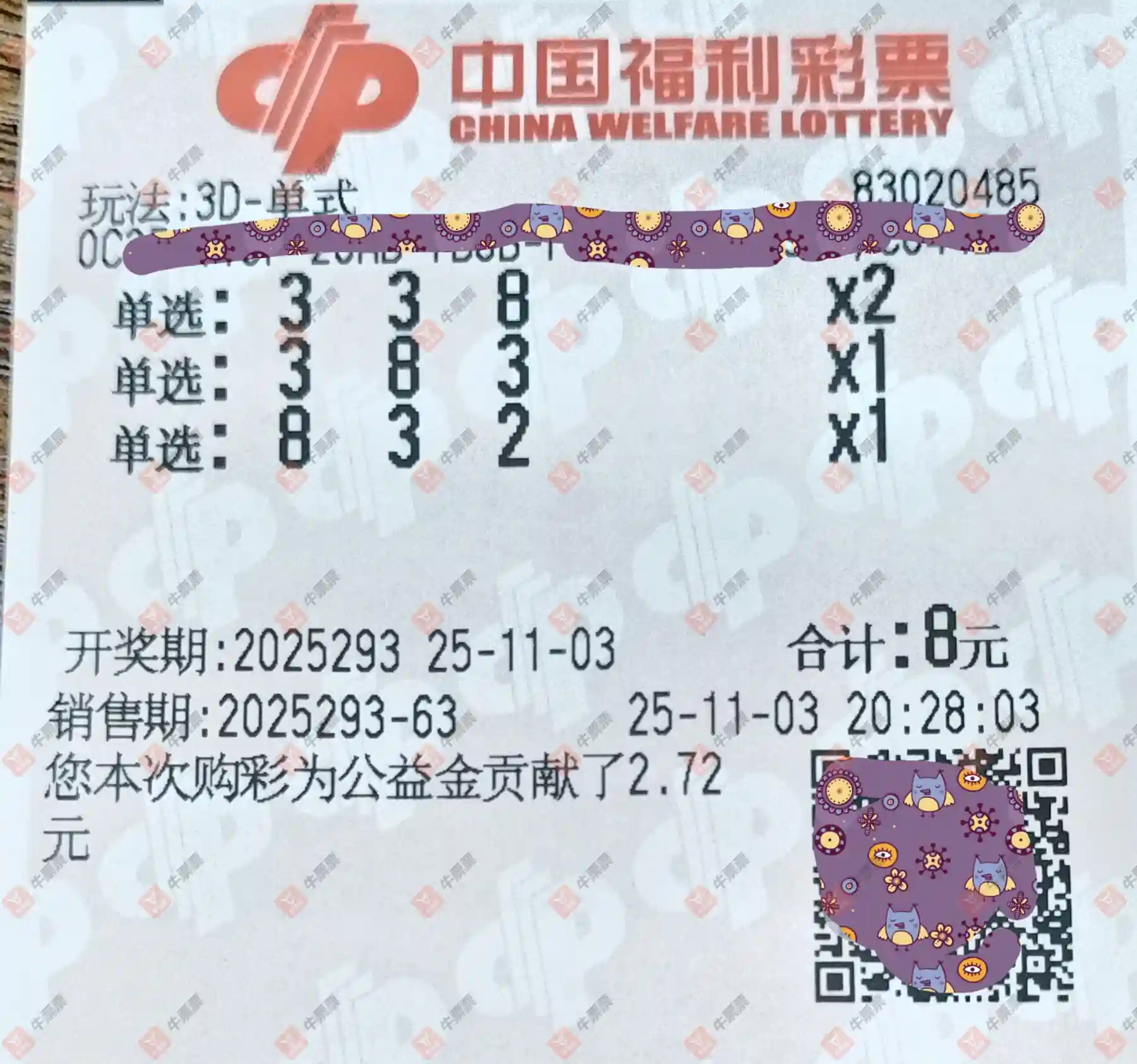 福彩3D 2025293期