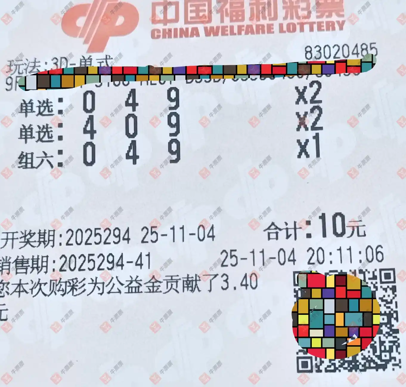 福彩3D 2025294期
